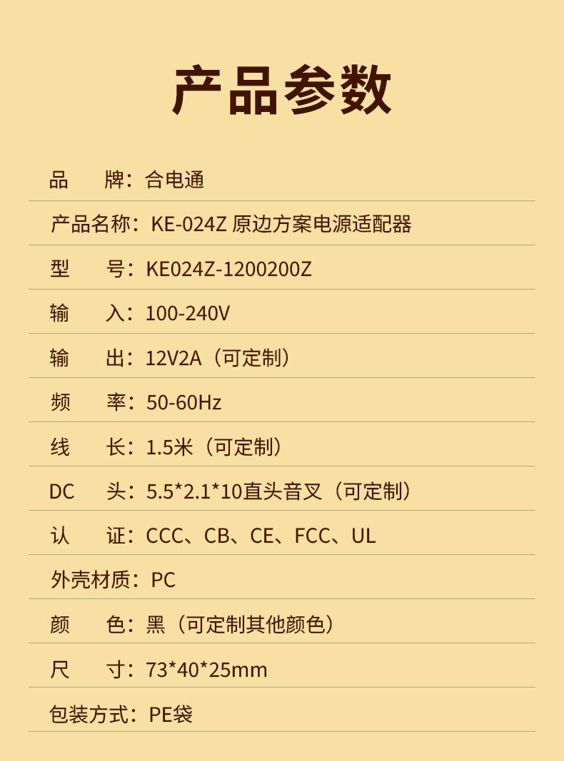 产品参数 12v2a电源适配器
