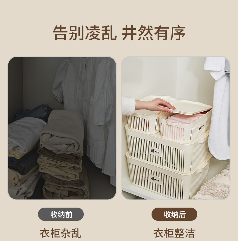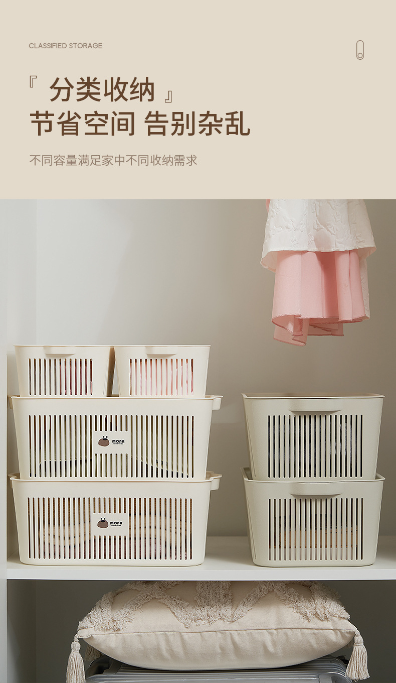 日式化妆品收纳盒桌面衣服衣柜塑料杂物收纳箱家用厨房橱柜收纳筐