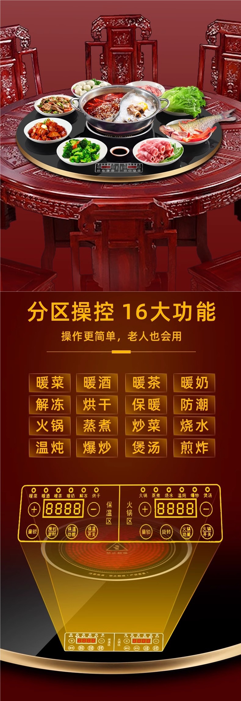 家用饭菜保温板恒温暖菜板热饭电磁炉圆形火锅自动旋转转盘商用