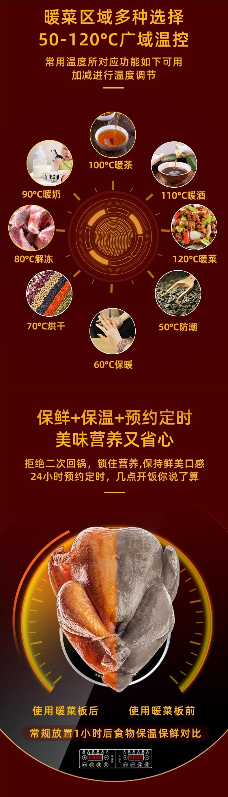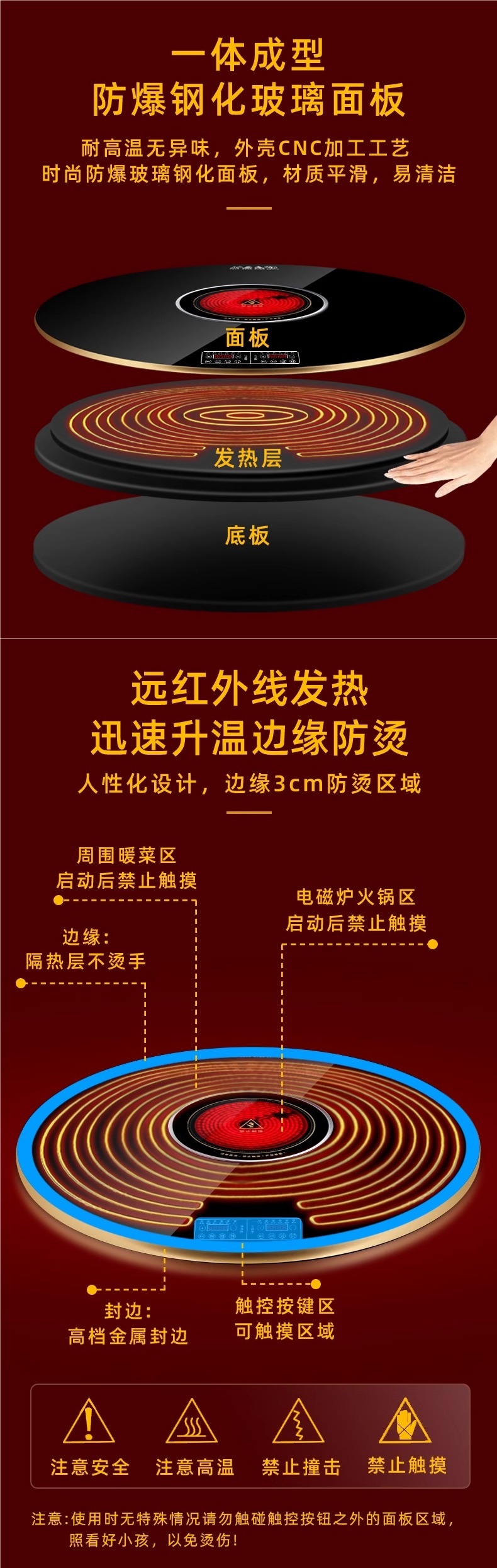 电磁炉火锅暖菜板多功能家用餐桌电动转盘热菜板饭菜保温加热神器