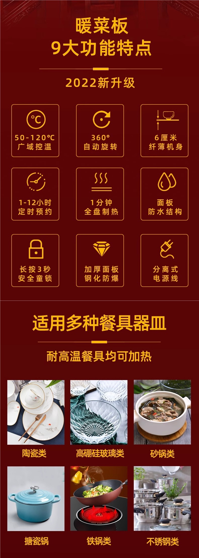 暖菜板带火锅家用多功能饭菜保温板圆餐桌旋转盘电加热板热菜神器
