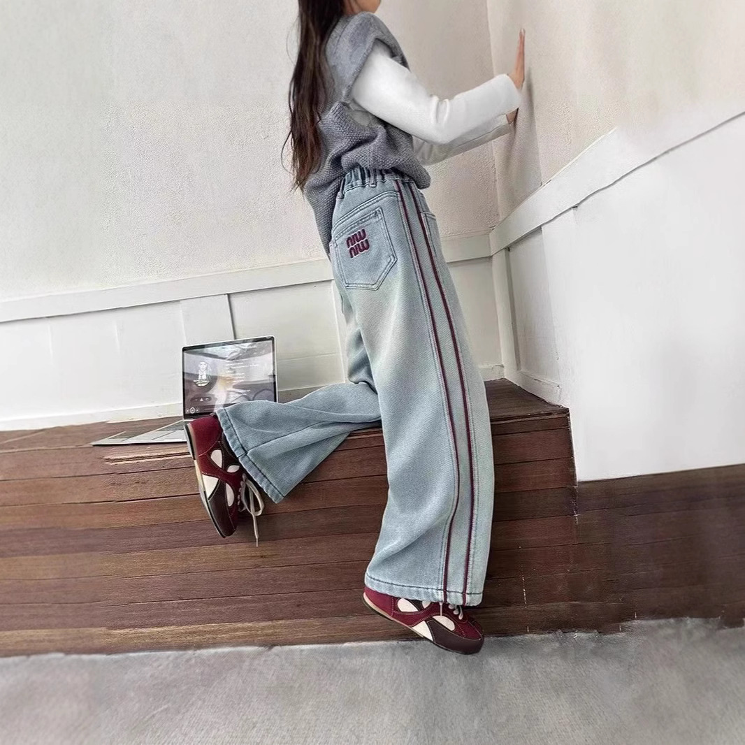 女童牛仔裤秋装2025新款洋气宝宝裤子阔腿裤秋冬款儿童加绒直筒裤