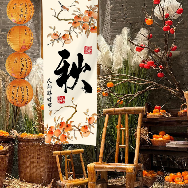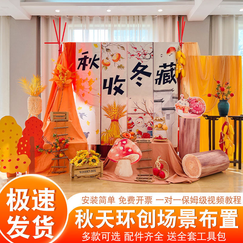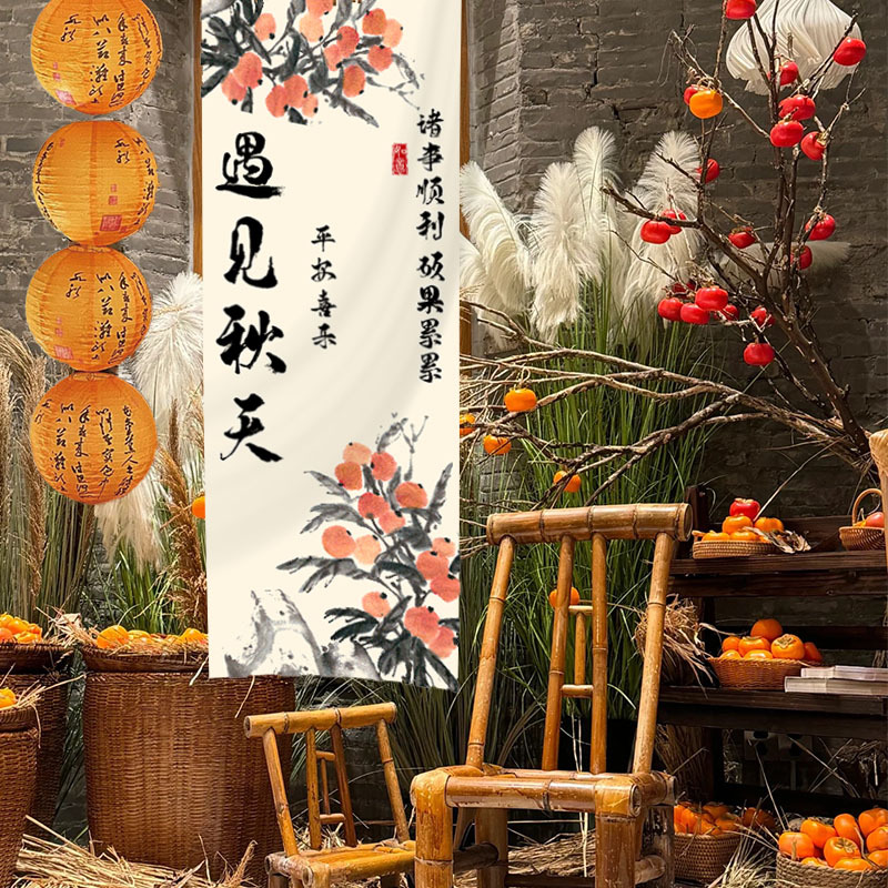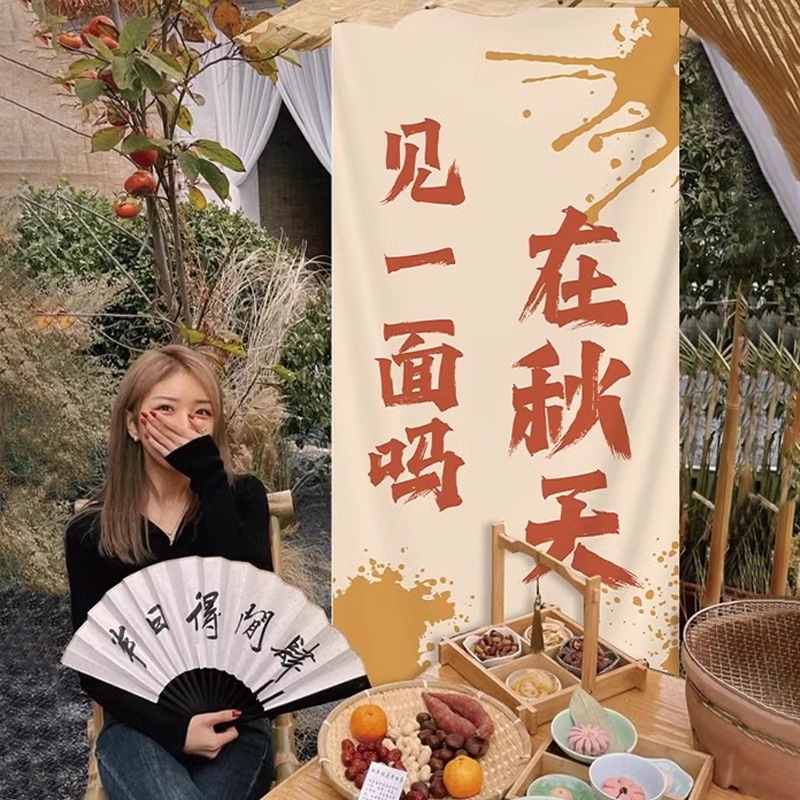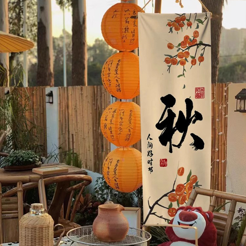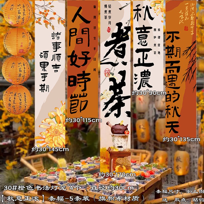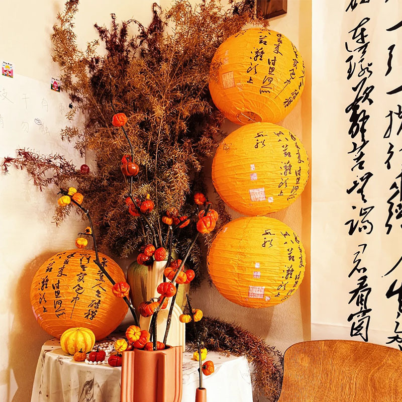 秋季丰收主题橙色古风纸灯笼中式氛围炉煮茶户外场景布置摄影道具