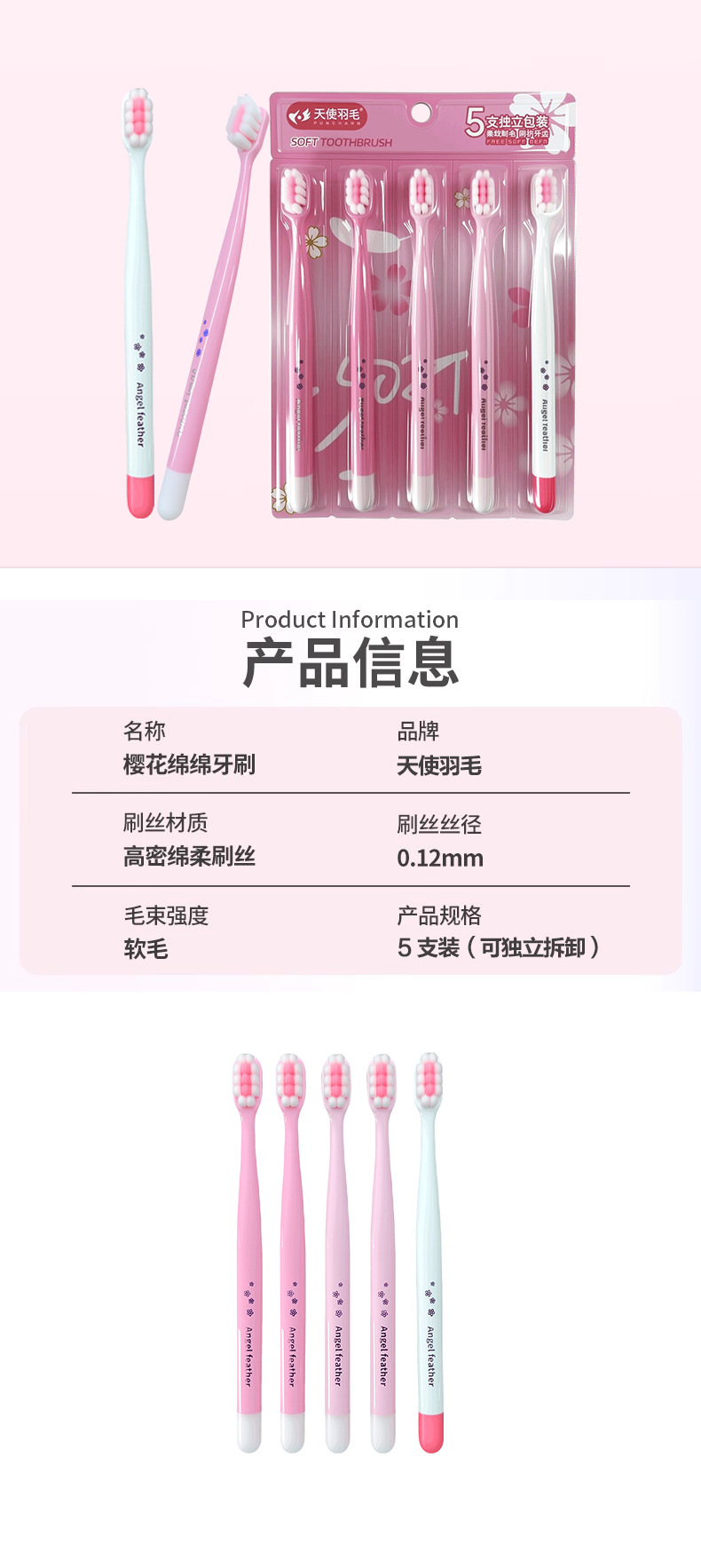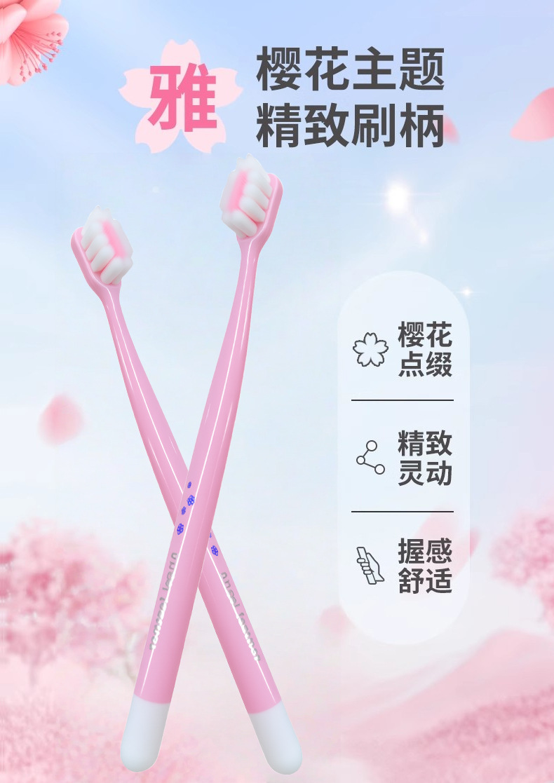 【C端爆款】爆款樱花独立包装5支万毛软毛成人牙刷INS风防滑手柄