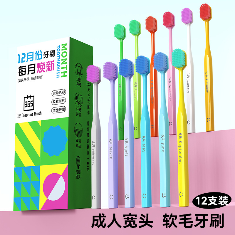 【12本セット】柔らかい毛の歯ブラシの成人家庭用の細い柔らかいマカロンの広い月の歯ブラシは口腔の現物をきれいにします。