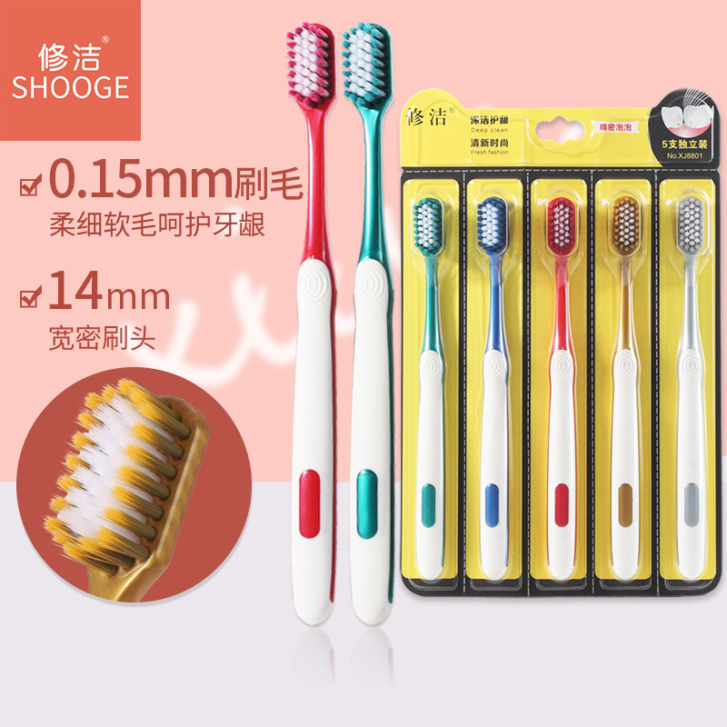 電商人気の幅広薄頭柔らか毛歯ブラシ 大人用 5本パック カップル家庭用細毛高級歯ブラシメーカー