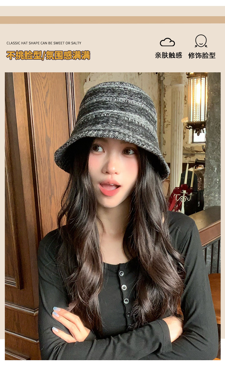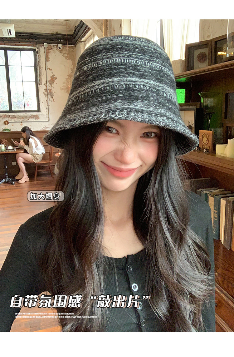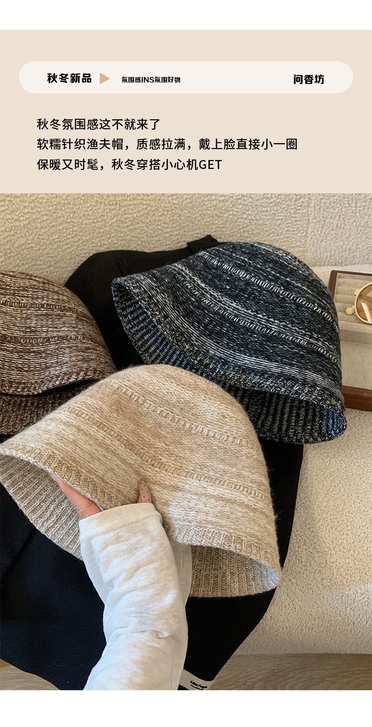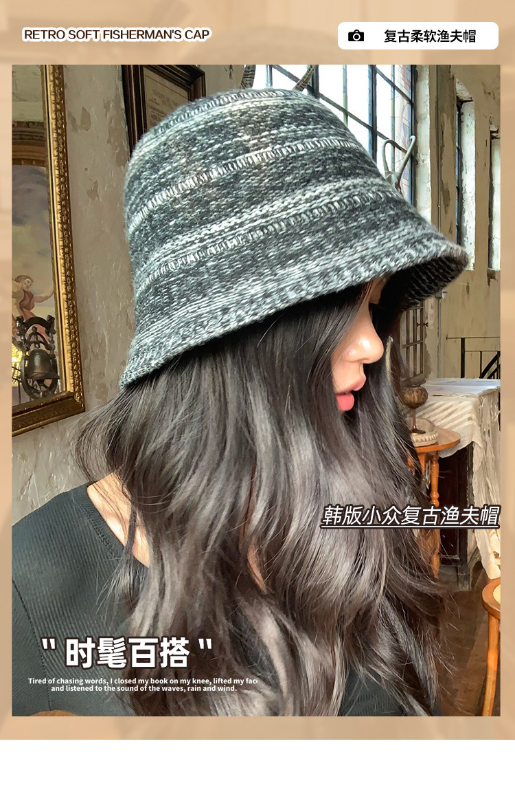 日系轻奢针织渔夫帽女秋冬季可折叠水桶帽子大头围显脸小复古盆帽