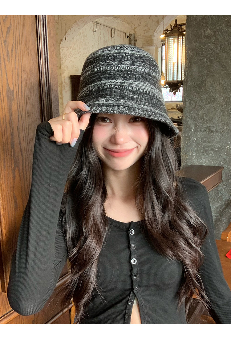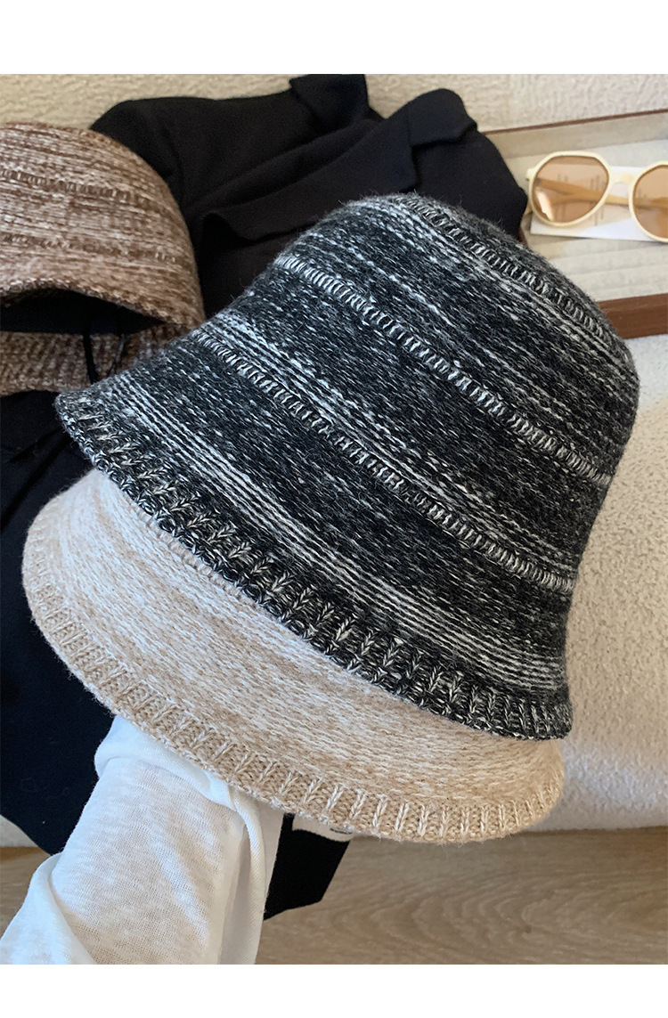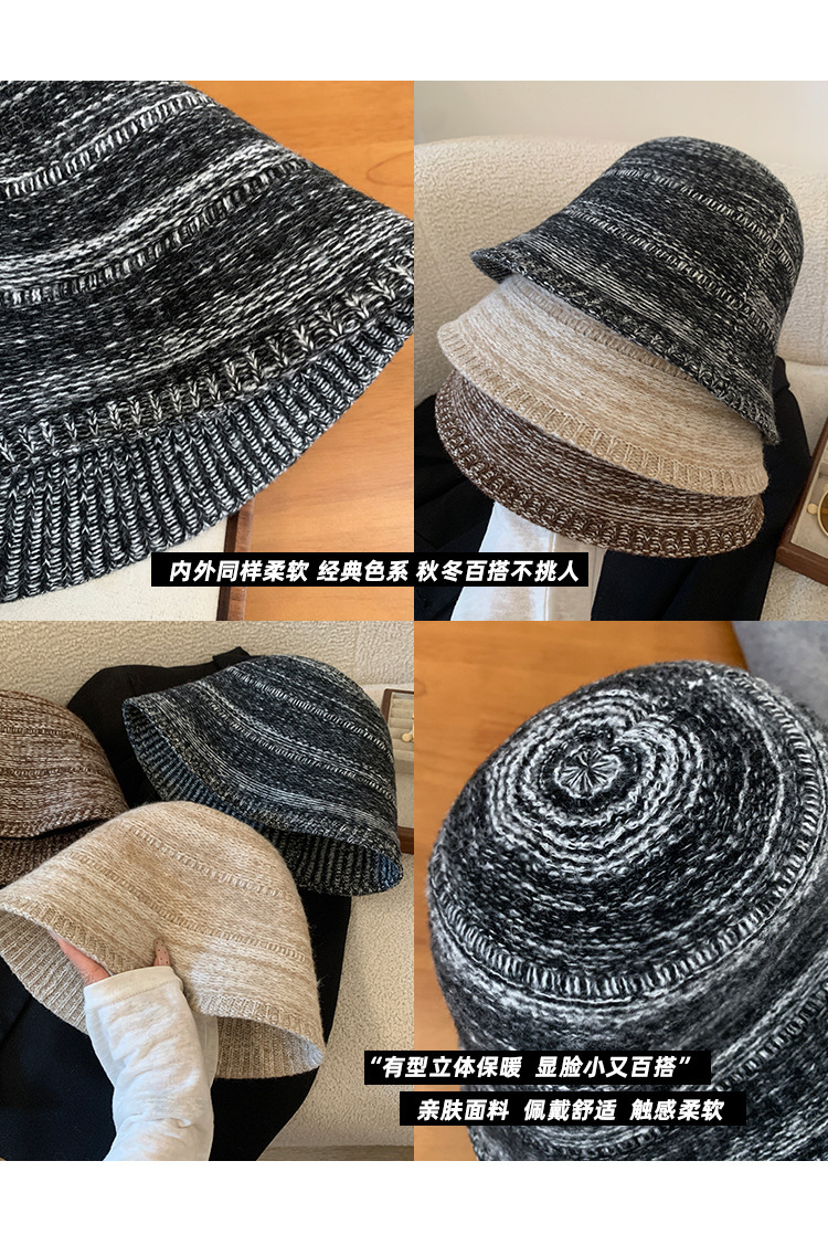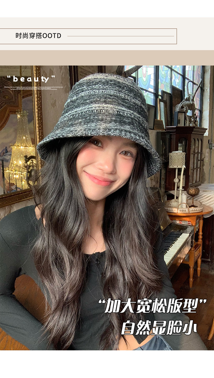 日系轻奢针织渔夫帽女秋冬季可折叠水桶帽子大头围显脸小复古盆帽