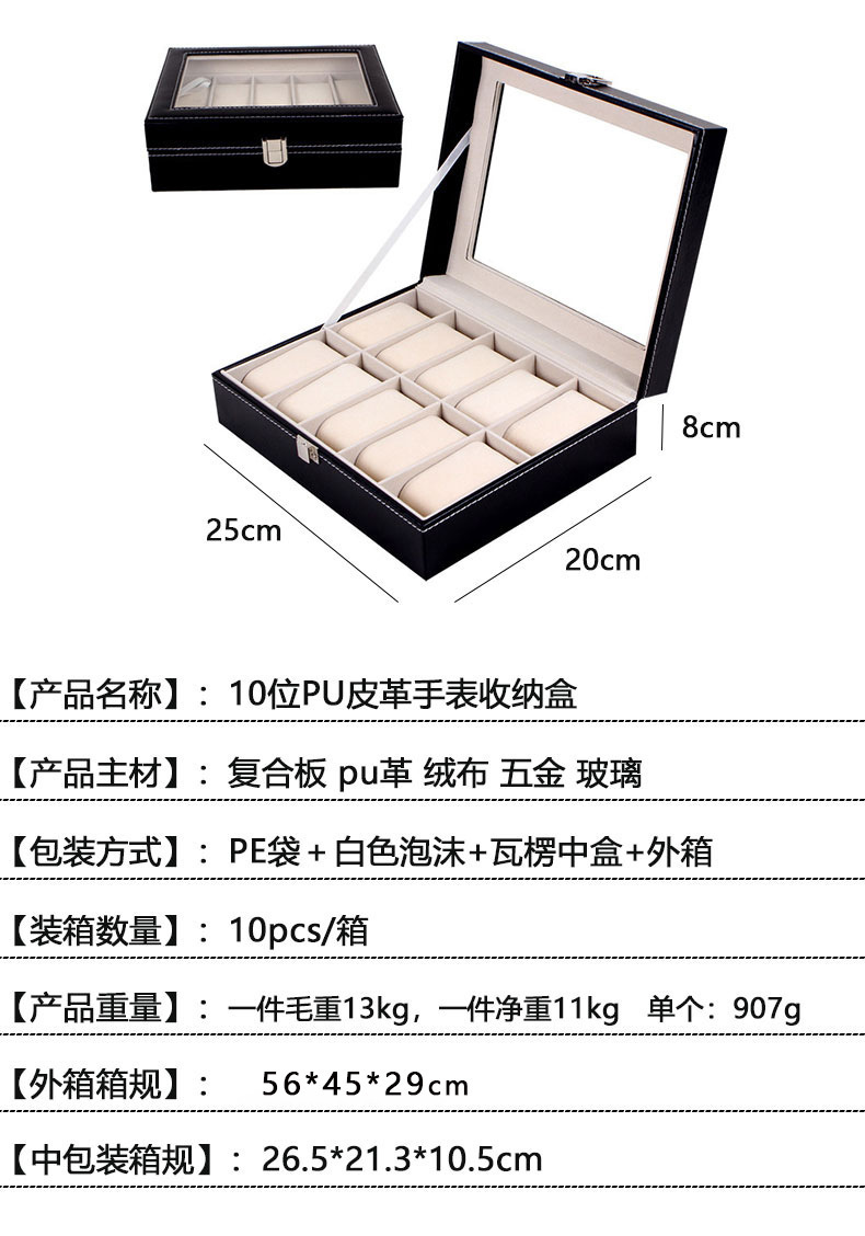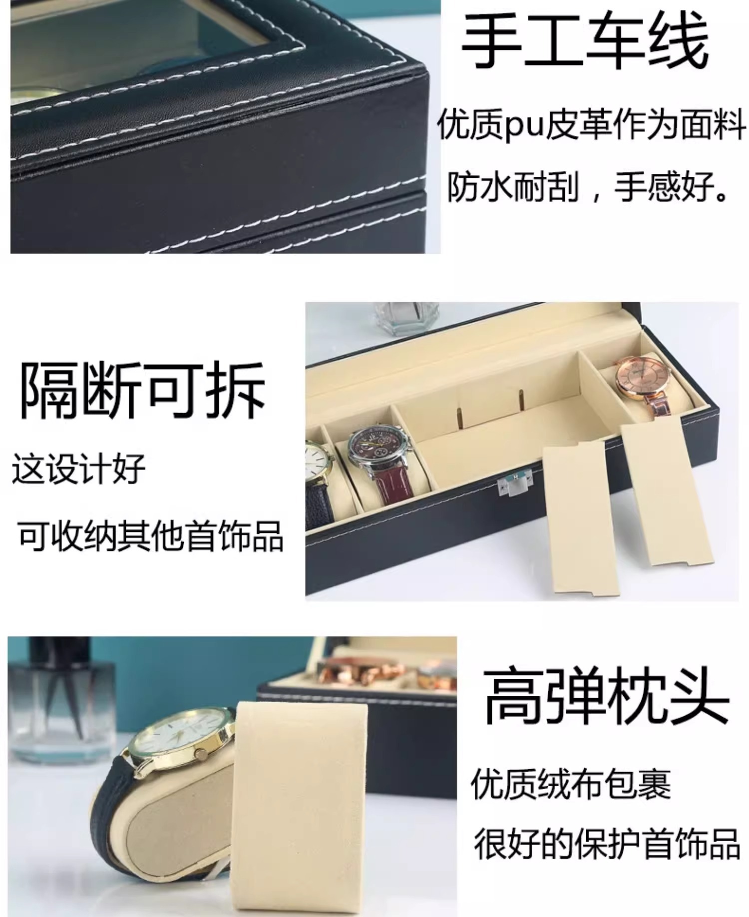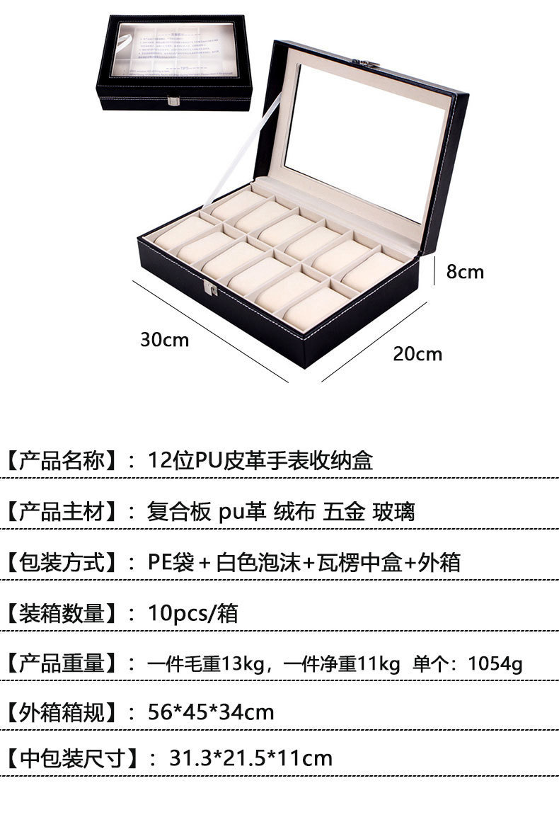 颜色 黑色皮革-3格手表手串收纳盒,黑色皮革-6格手串收纳盒,黑色皮革-10格手表手串收纳盒,黑色皮革-12格手表手串收纳盒,黑色皮革-12格双层手表手串收纳盒