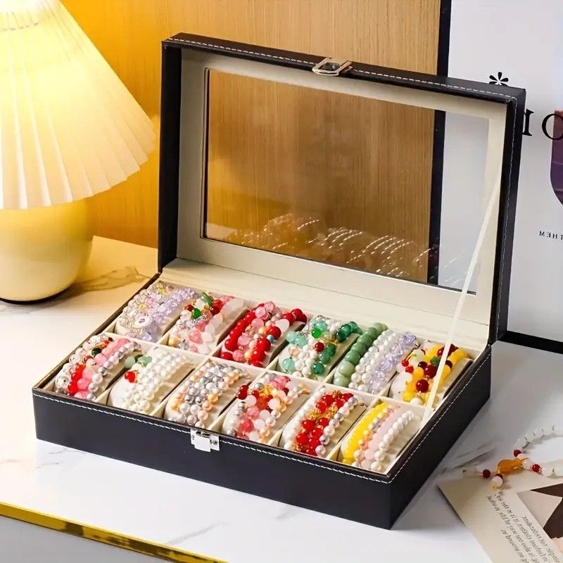 水晶手链手串收纳盒皮质防尘透明大容量高档文玩佛珠手表展示盒子