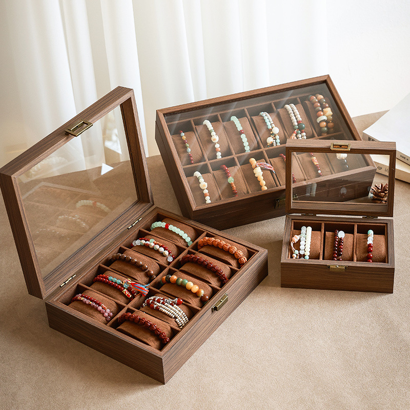 文玩手串收纳盒高档精致胡桃木纹佛珠水晶手链手表手镯饰品首饰盒