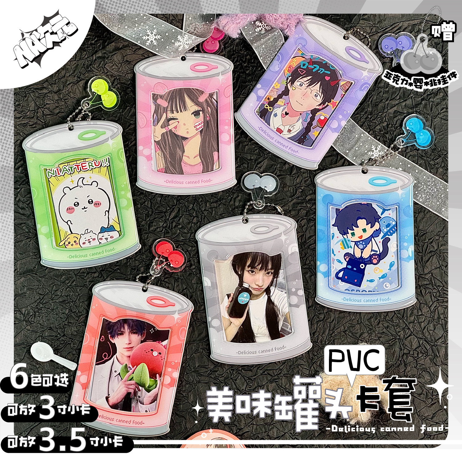 おいしい缶詰PVCカードセット3インチの小さなカードが谷美カードセットをたたいてストラップ谷子に痛み包材料を展示する