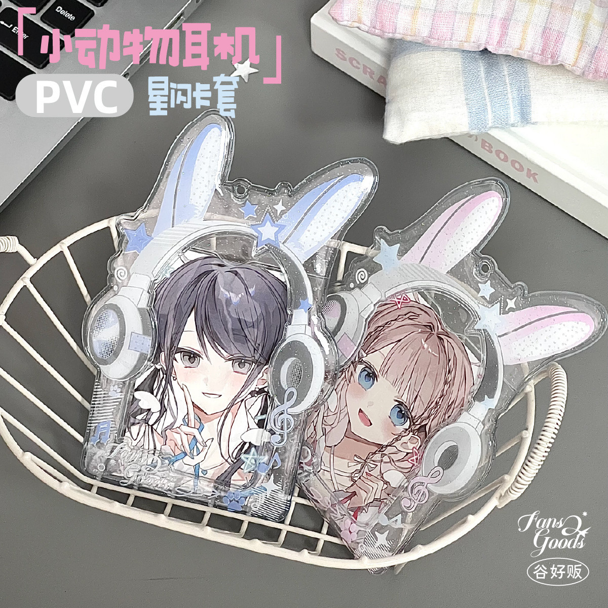 谷好贩动物耳机星闪PVC3寸金葱卡套小卡展示追星谷美