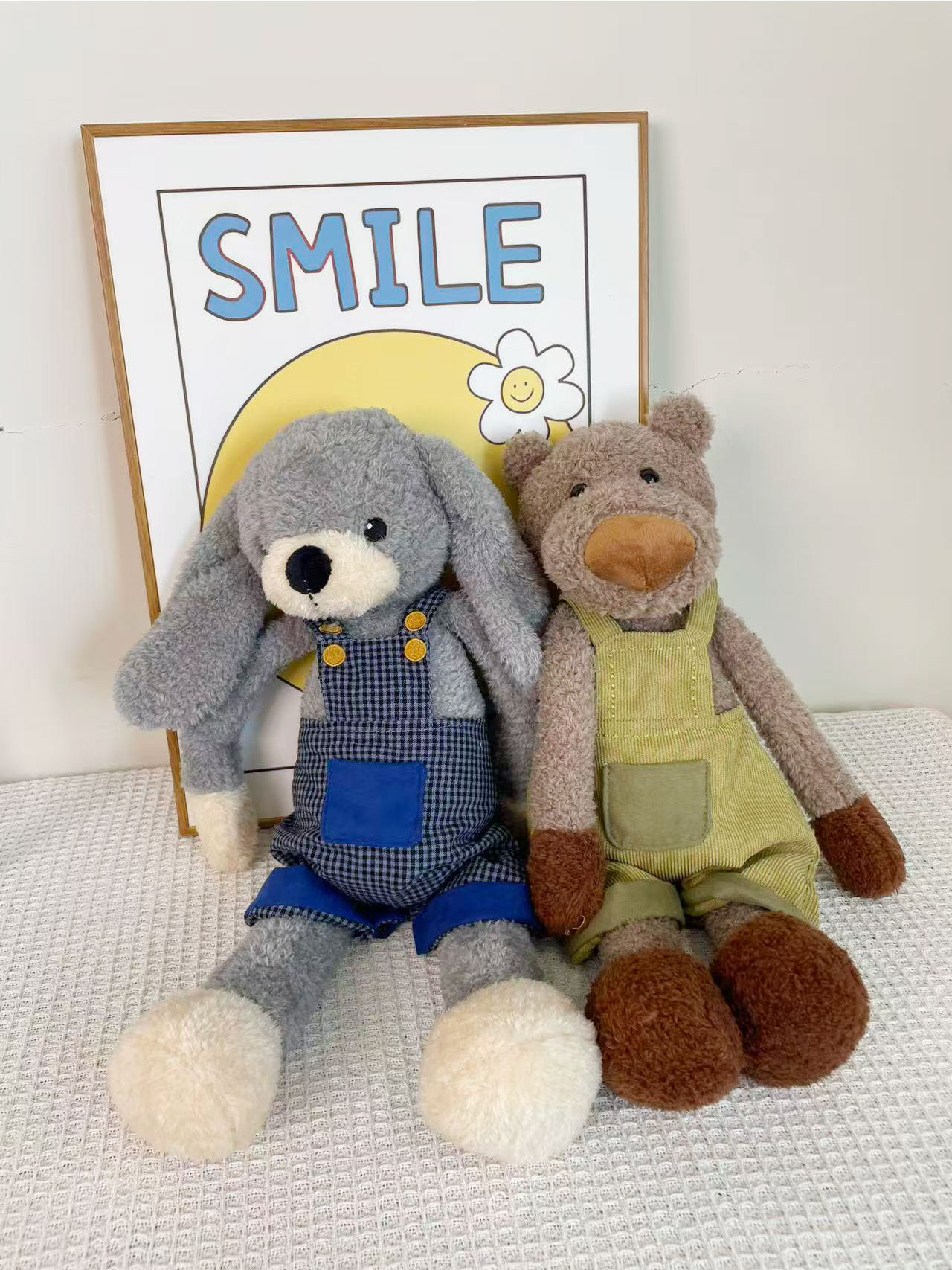 网红森林蓝色背带兔子公仔灰色兔子毛绒玩具宝宝抱枕代发