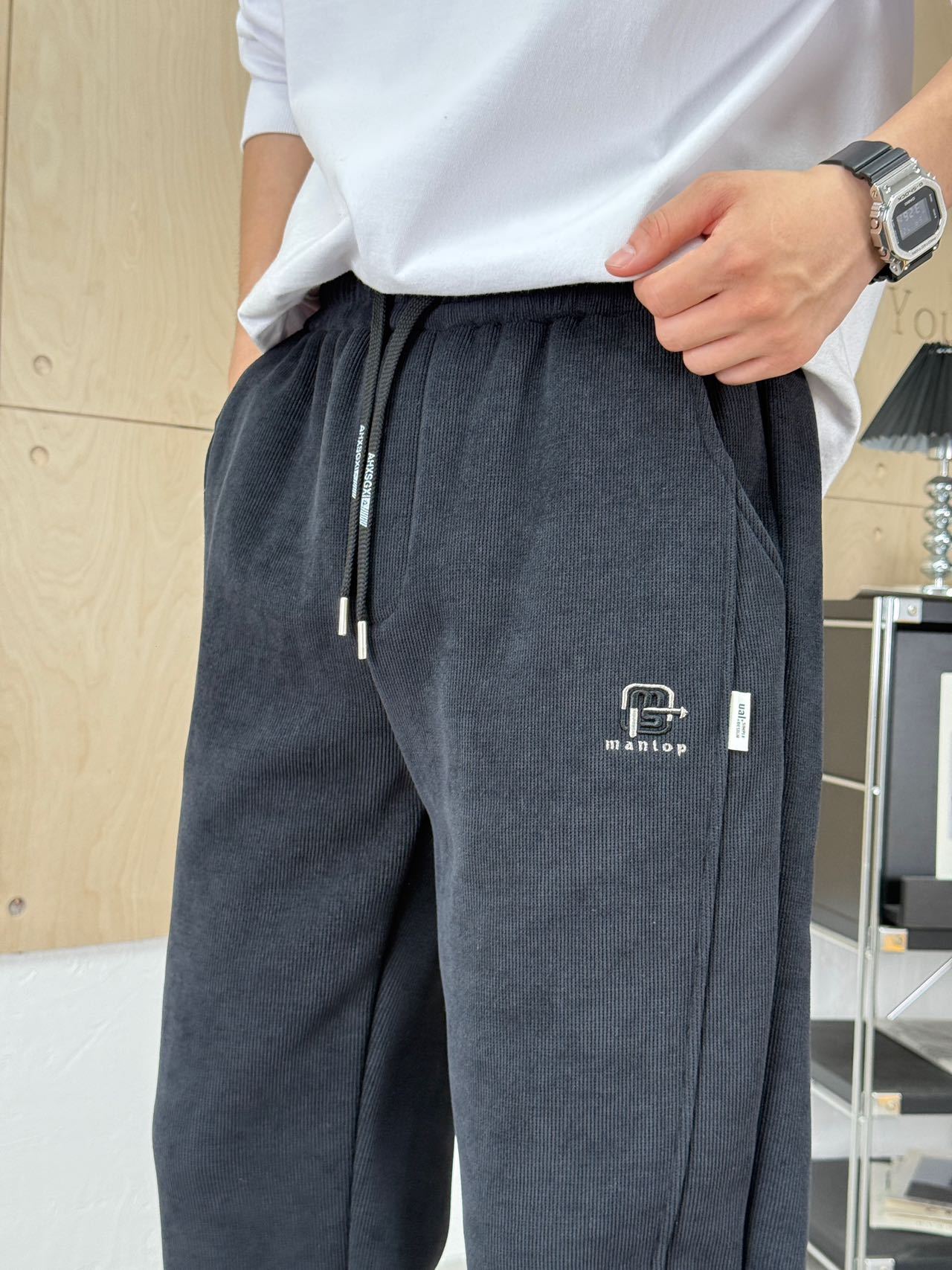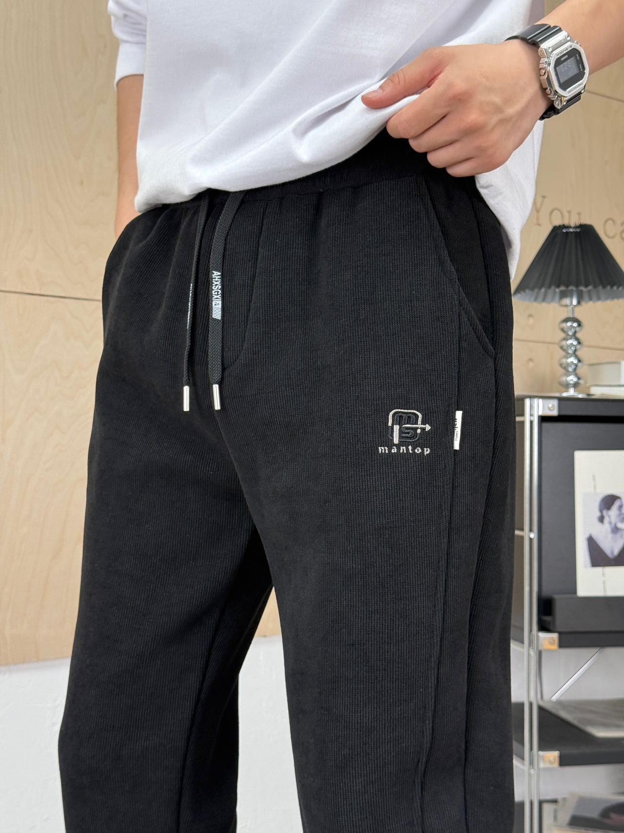冬款男款欧棉绒条纹束脚裤 加厚保暖直筒休闲裤8805