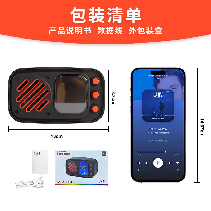 新型Bluetoothスピーカー ミニ音楽プレーヤー 高品質ディスプレイ搭載 スマート目覚まし時計 跨境販売