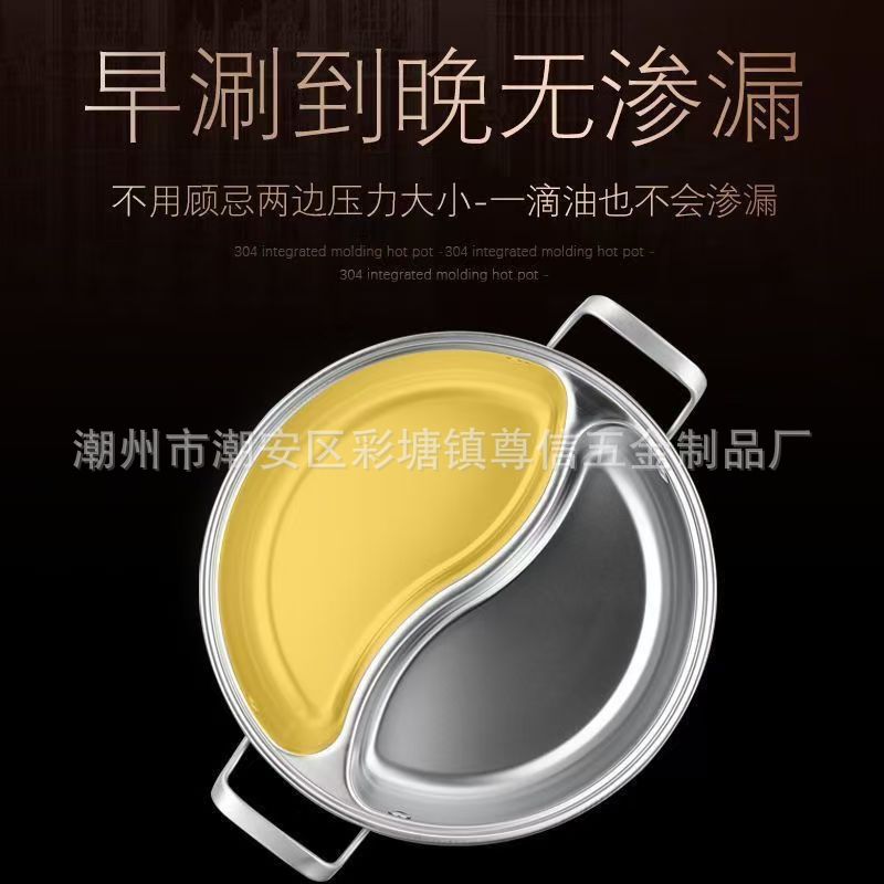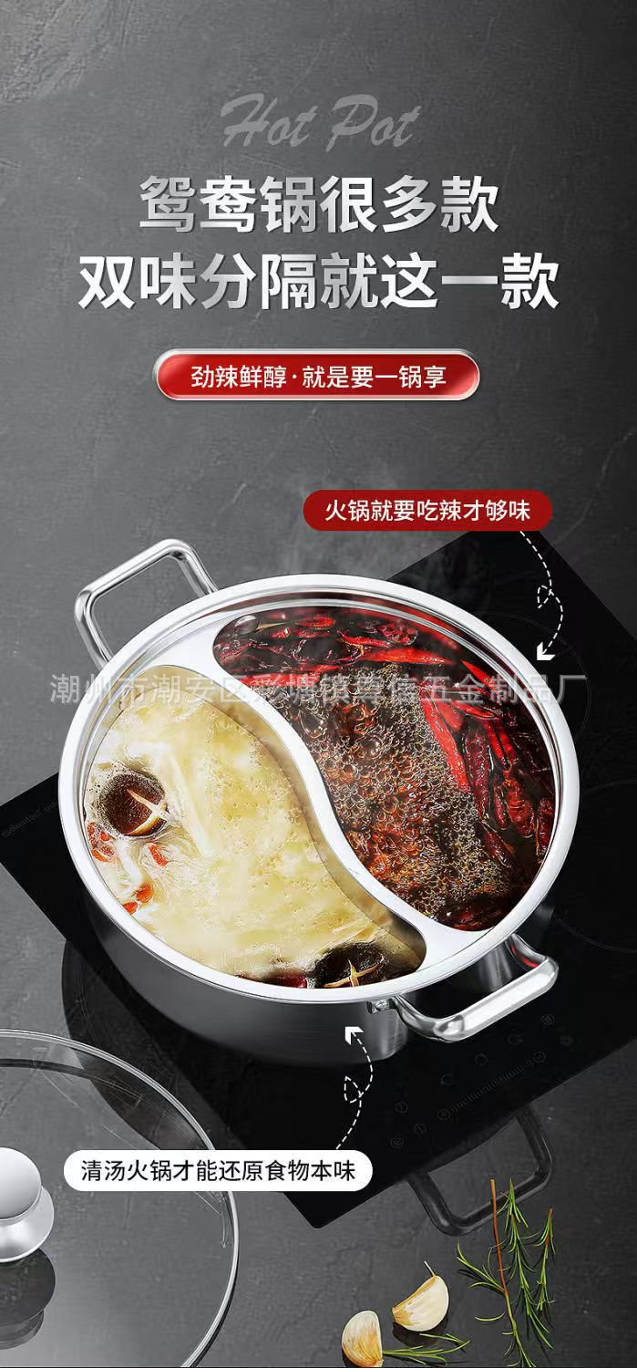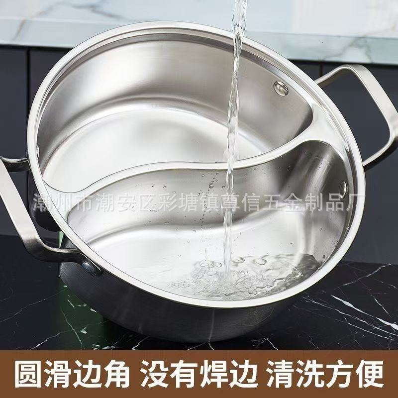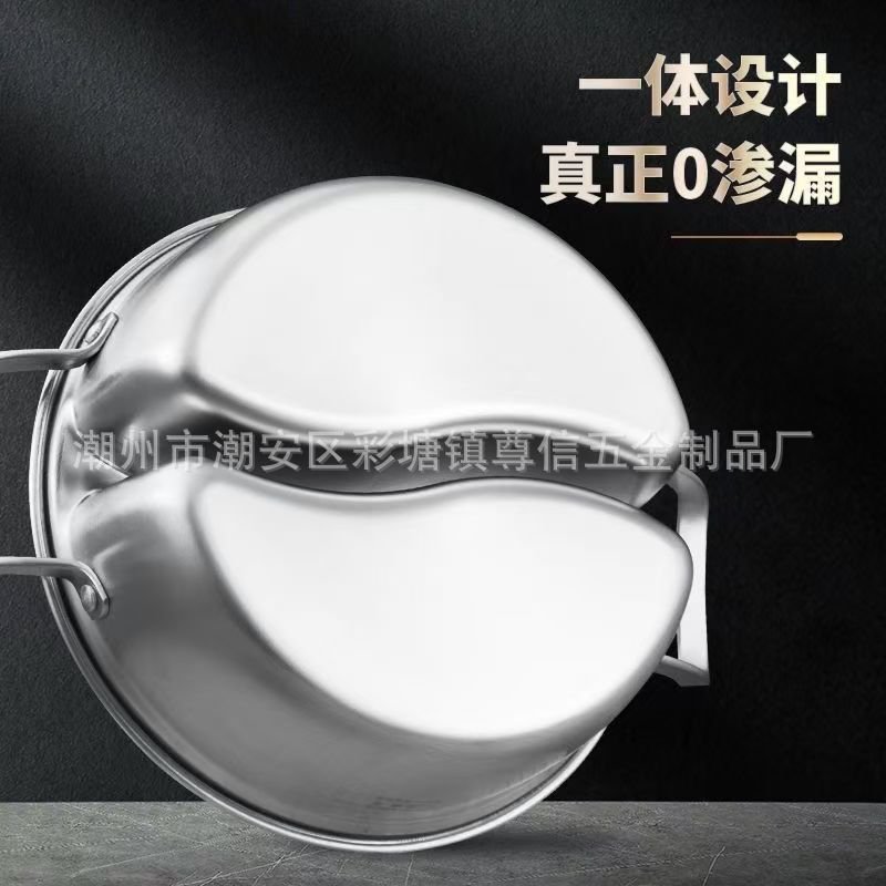 不锈钢特厚鸳鸯锅一体成型耐高温家用带盖大容量商用火锅涮锅厂家