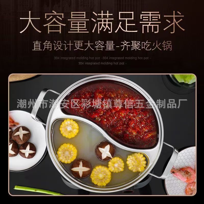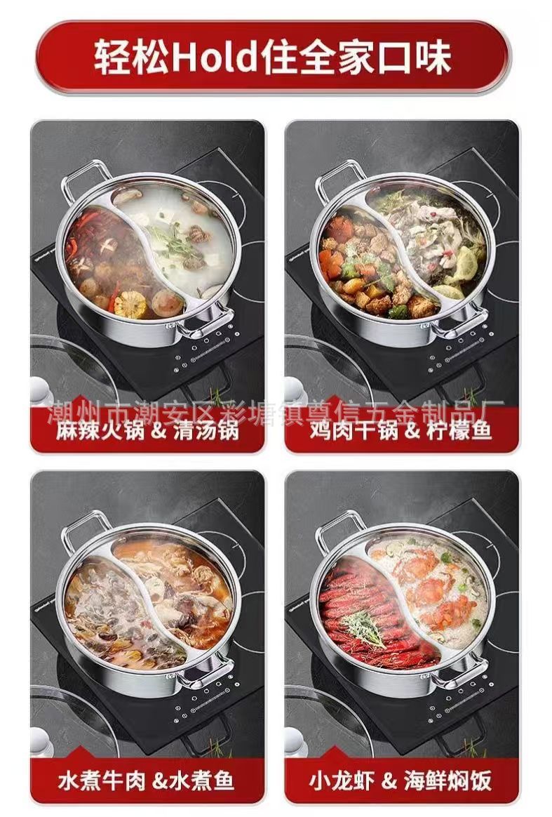 一体成型316不锈钢鸳鸯锅加厚双耳汤锅商用分格火锅家用汤锅电磁