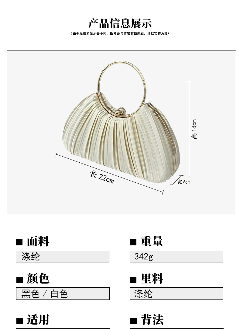 新款跨境手拎包褶皱小手包晚宴包KTV 公主名媛宴会单肩斜跨手提包