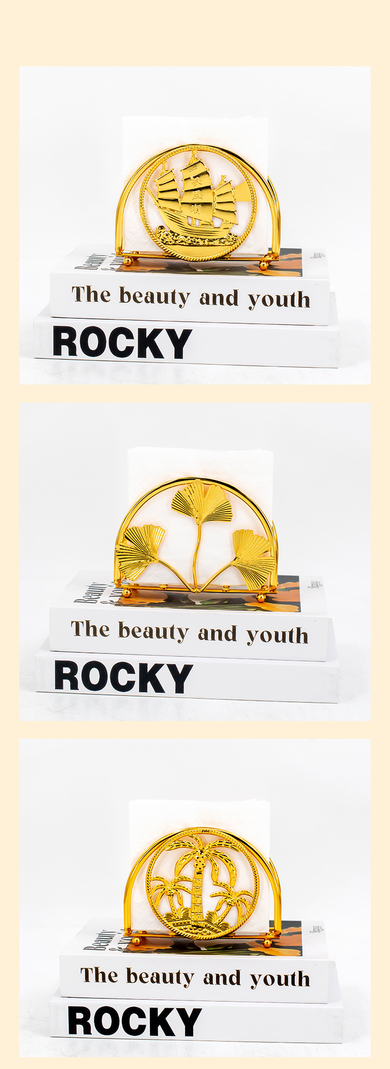鉄芸ティッシュ棚家庭用創意ヨーロッパ式ホテルレストランカフェ紙クリップ金色のティッシュ収納テーブル
