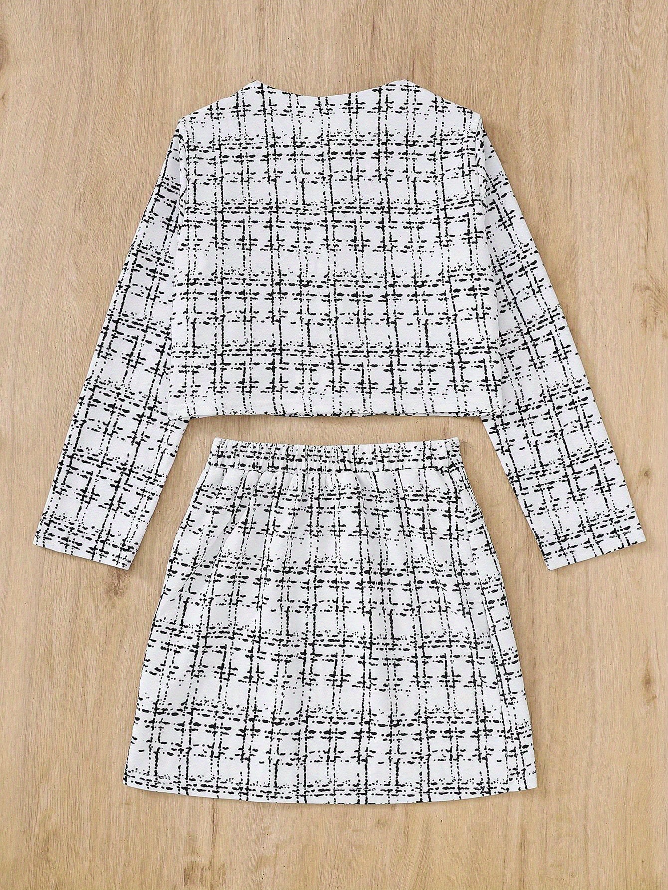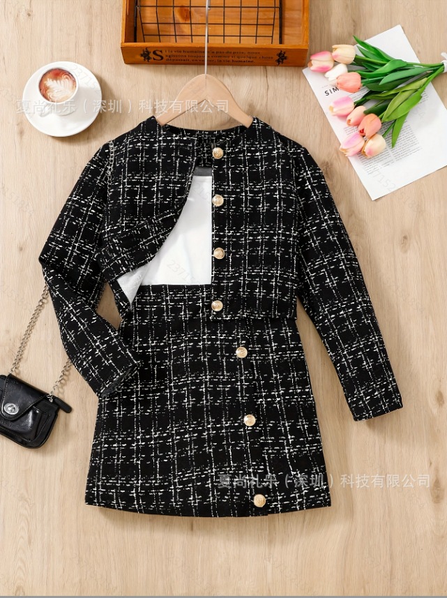2025新款欧美格子裙套装女童时尚两件套春季外套短裙temu爆款