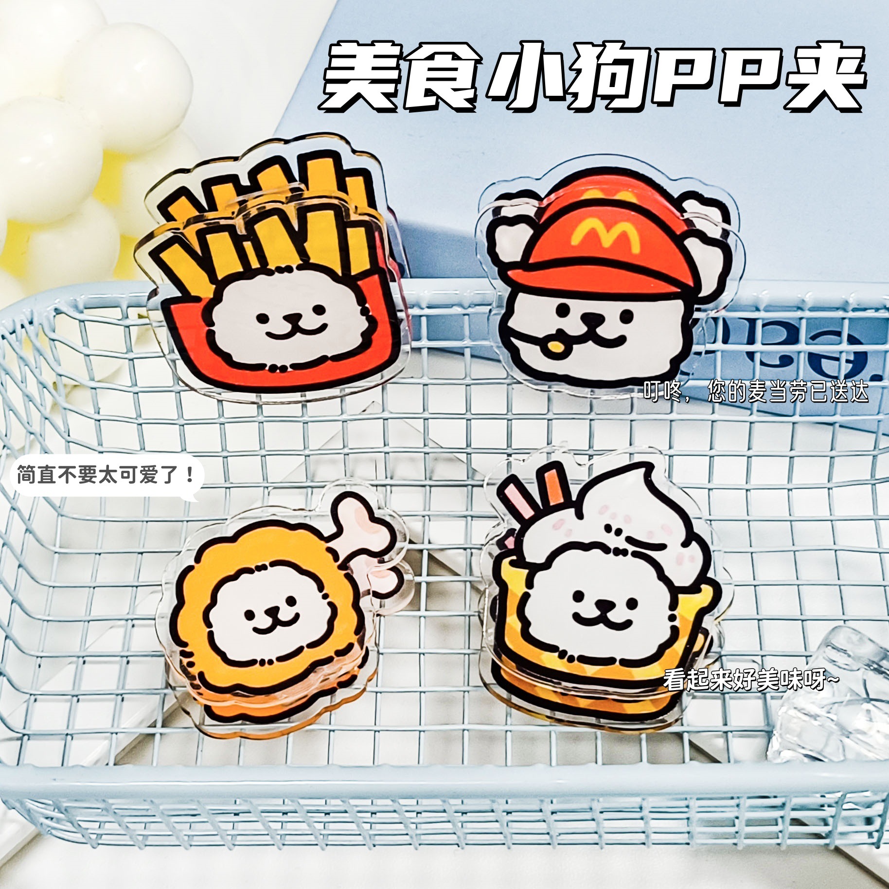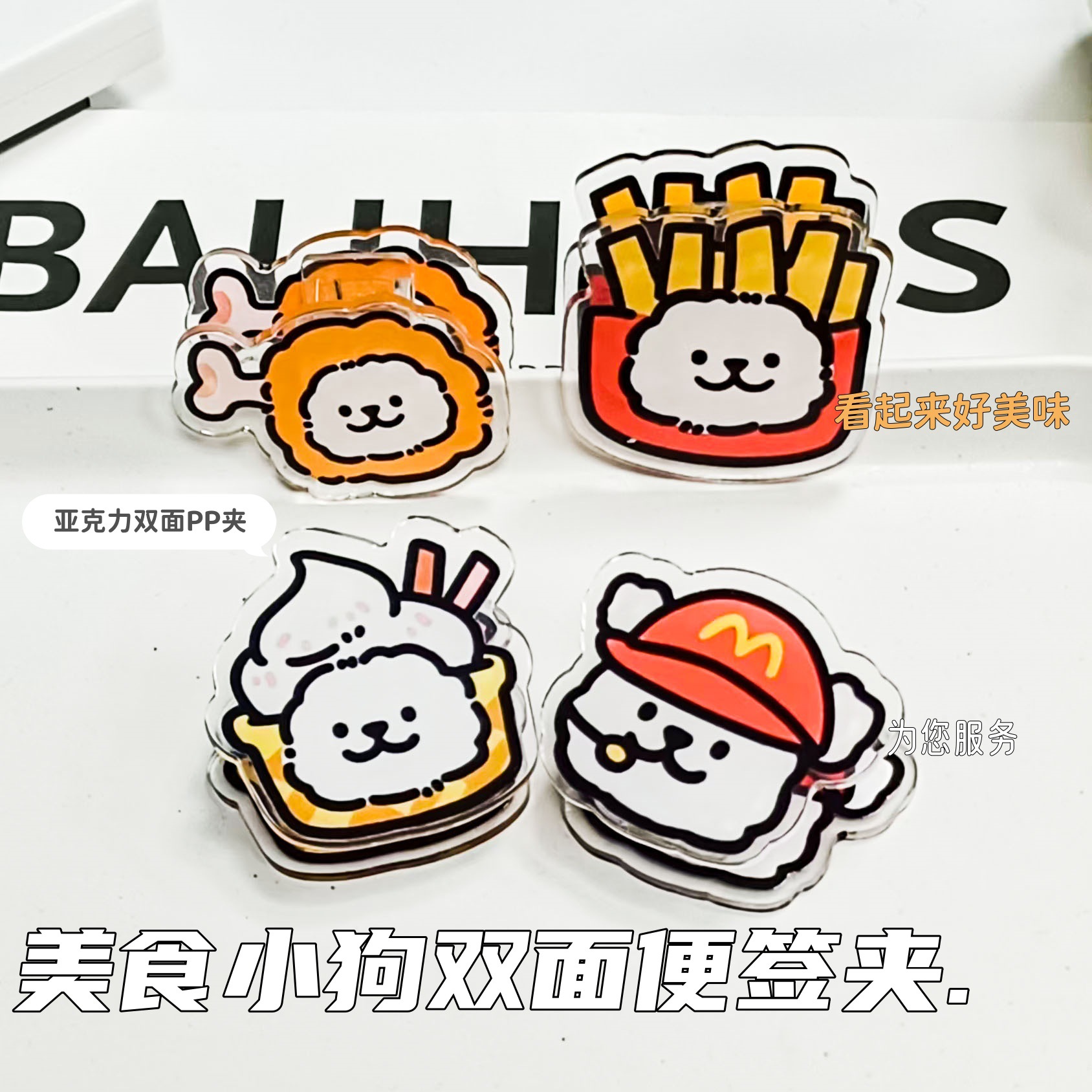 卡通美食小狗PP便签夹ins高颜值可爱学生收纳试卷亚克力双面夹子