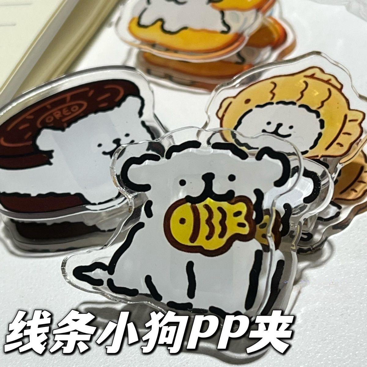 漫画グルメ子犬ppクリップins高颜値便箋クリップかわいい学生収納試巻アクリル両面クリップ