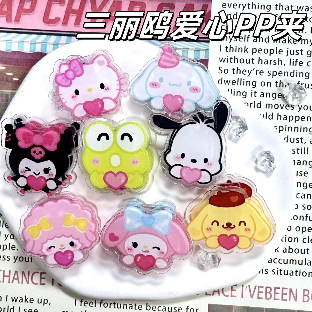 漫画アニメサンリオ PP クリップシリーズアクリル PP クリップクリエイティブ楽しいフォトクリップメモクリップフォルダー