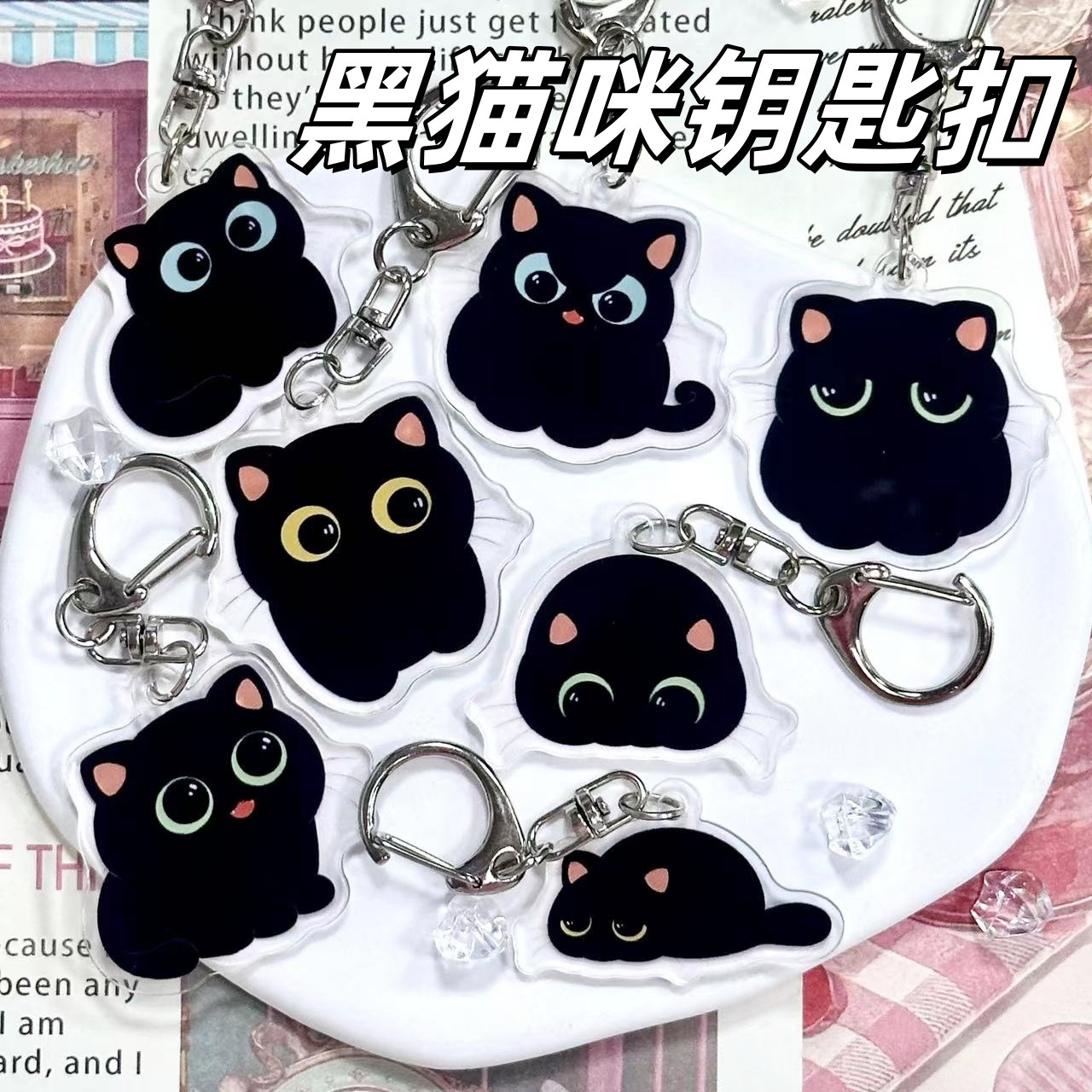クロスボーダー新しい 2D 漫画猫アクリルキーホルダーかわいい黒猫スクールバッグペンダントキーホルダー