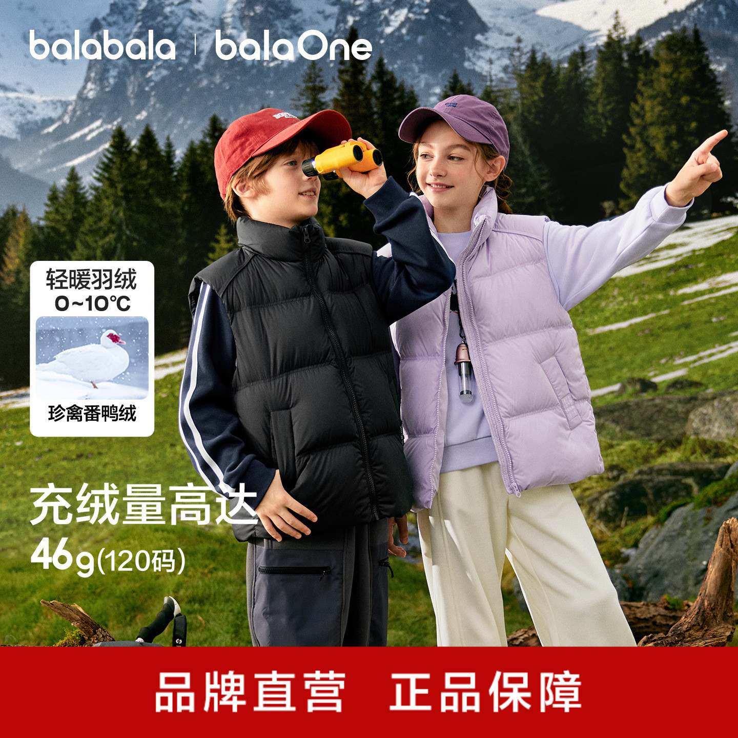 巴拉巴拉儿童羽绒马甲女童男童亲子外套上衣新款童装2025秋冬保暖