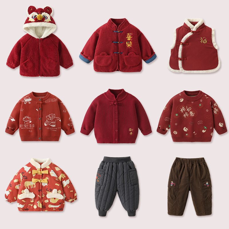 【お年賀服クリアランス】男の子用コート、綿服、子供用新年服、女の子用セーター、ベビー用新年長ズボン