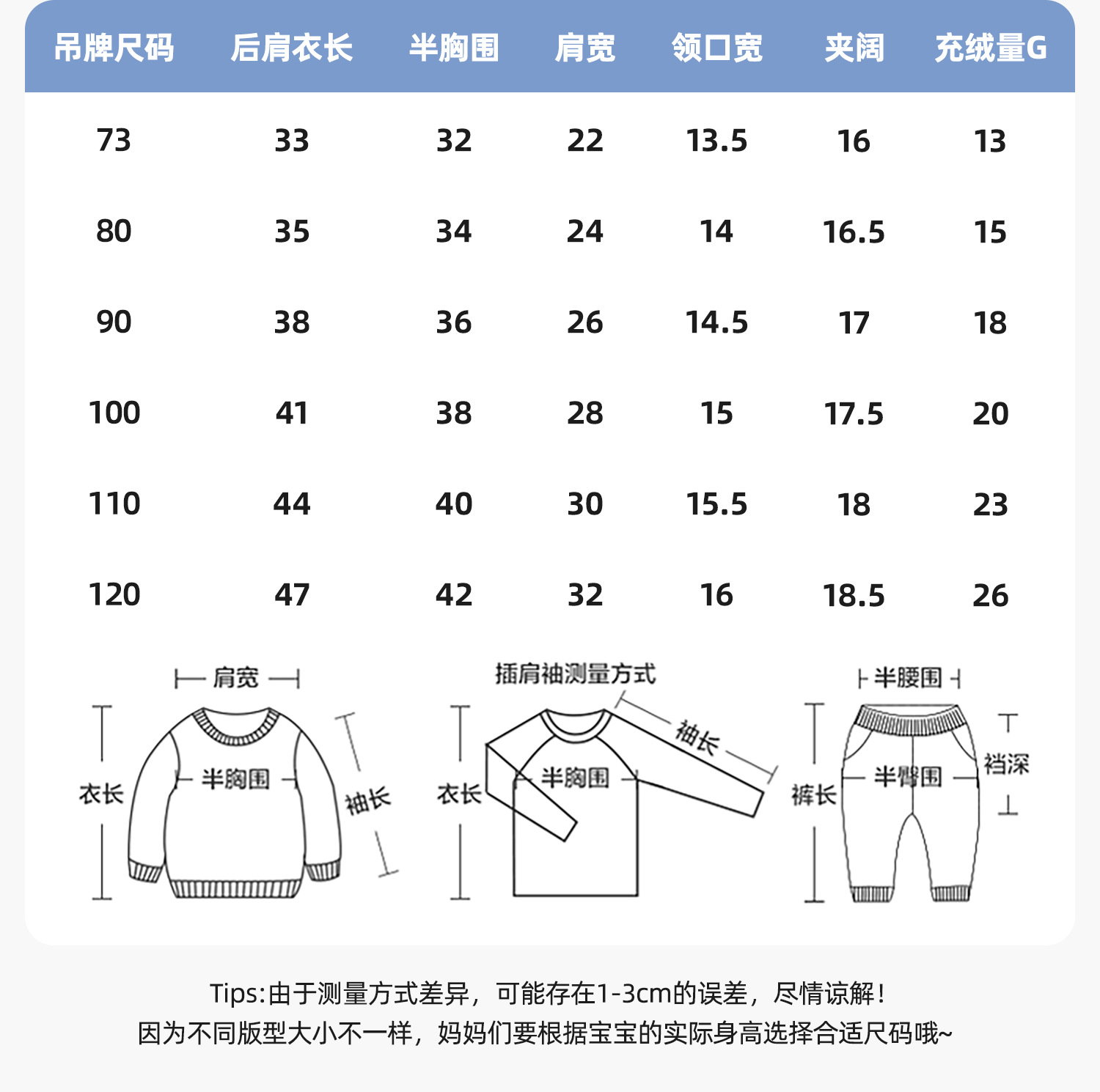 适合身高 73CM,80cm,90cm,100cm,110cm,120cm