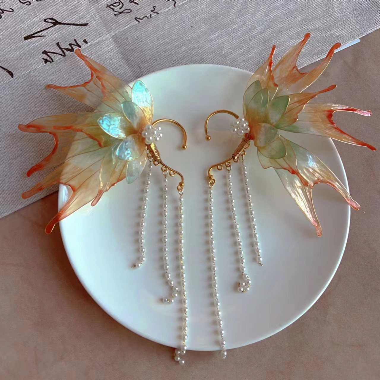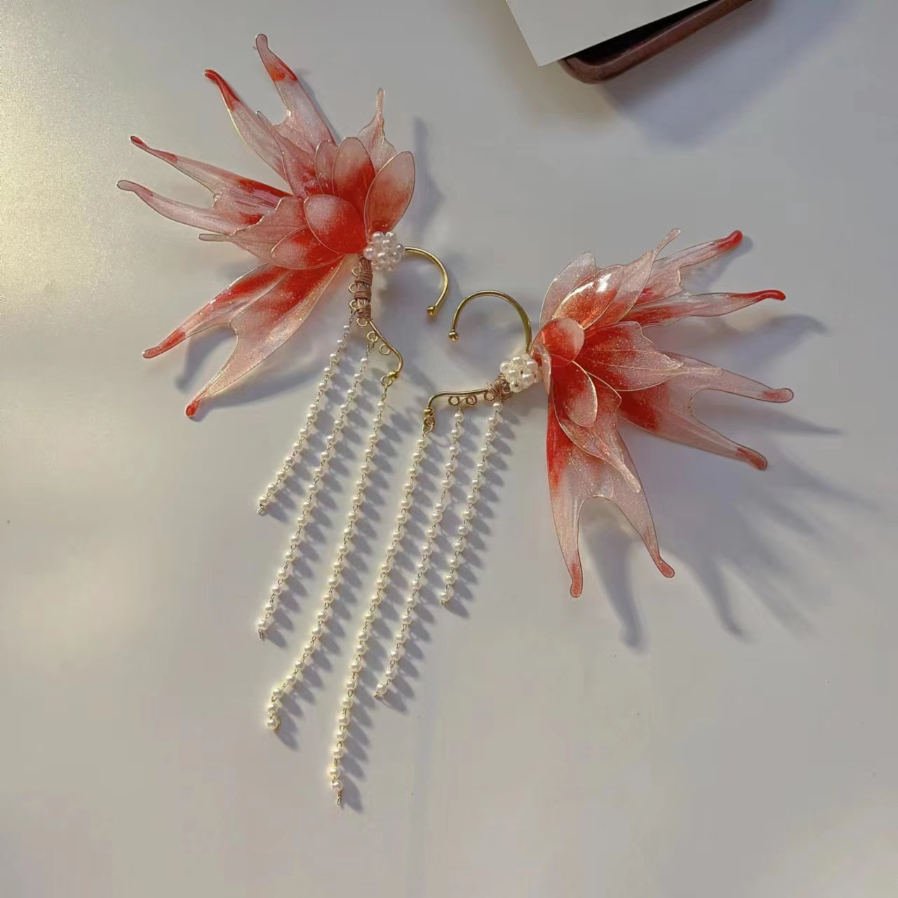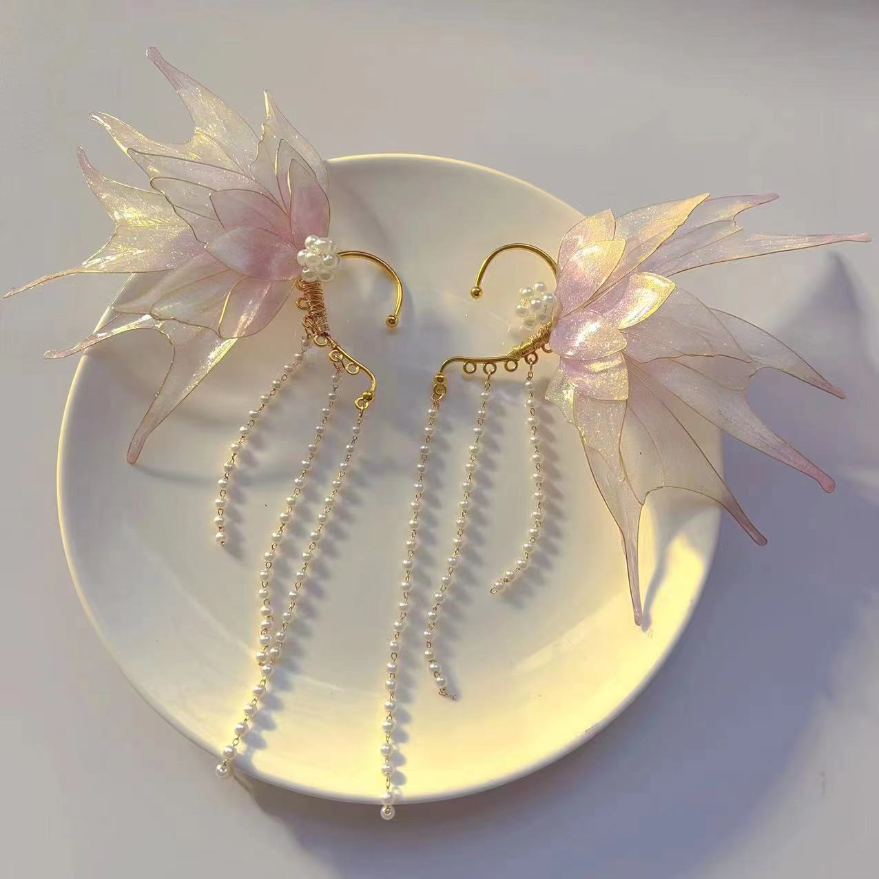 美人鱼公主流苏耳挂超仙精灵汉服发饰古风造液花耳饰配饰国风配饰