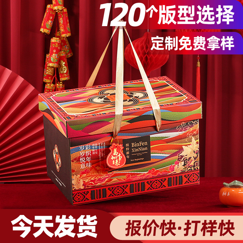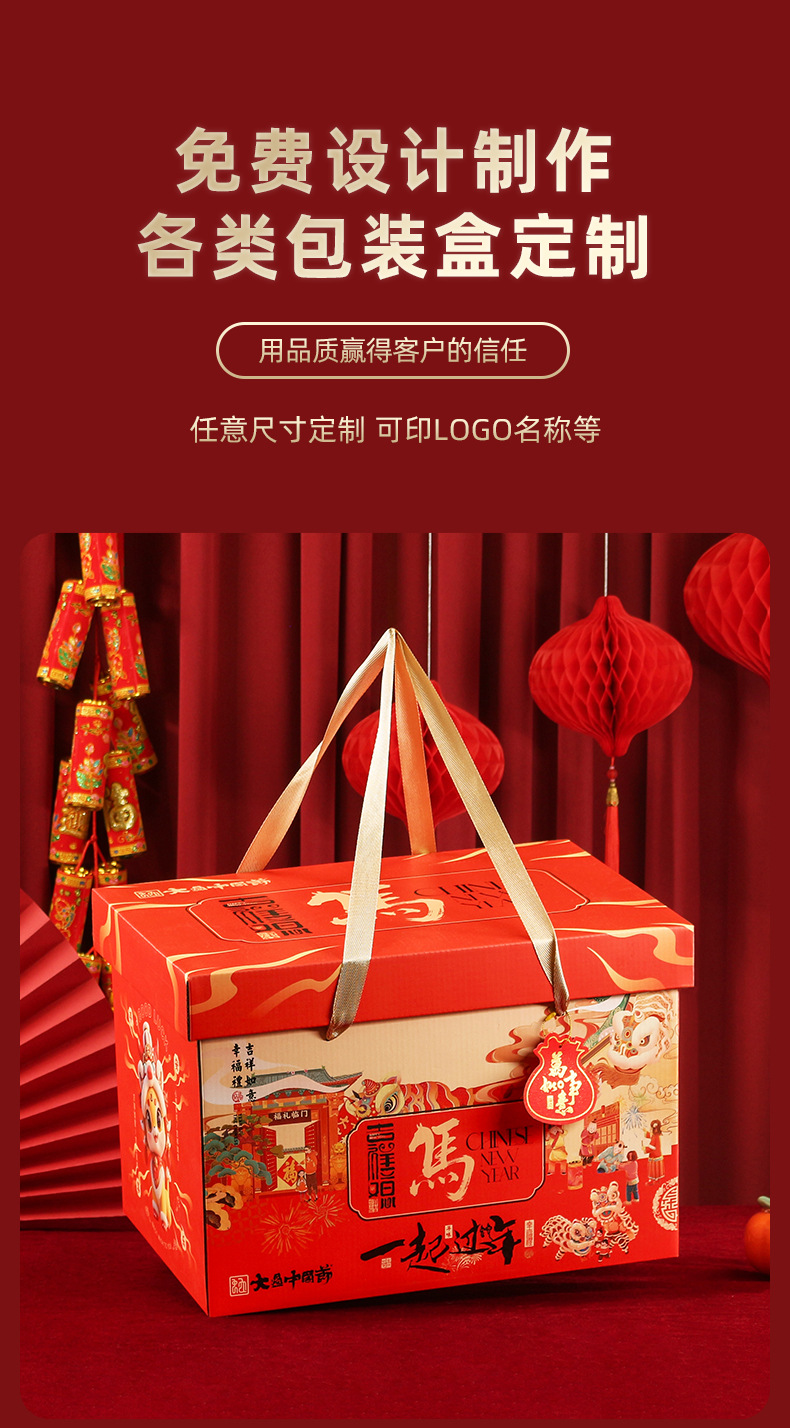 2026马年元旦礼盒新年春节国潮手提包装盒年货伴手礼品盒裸盒定制