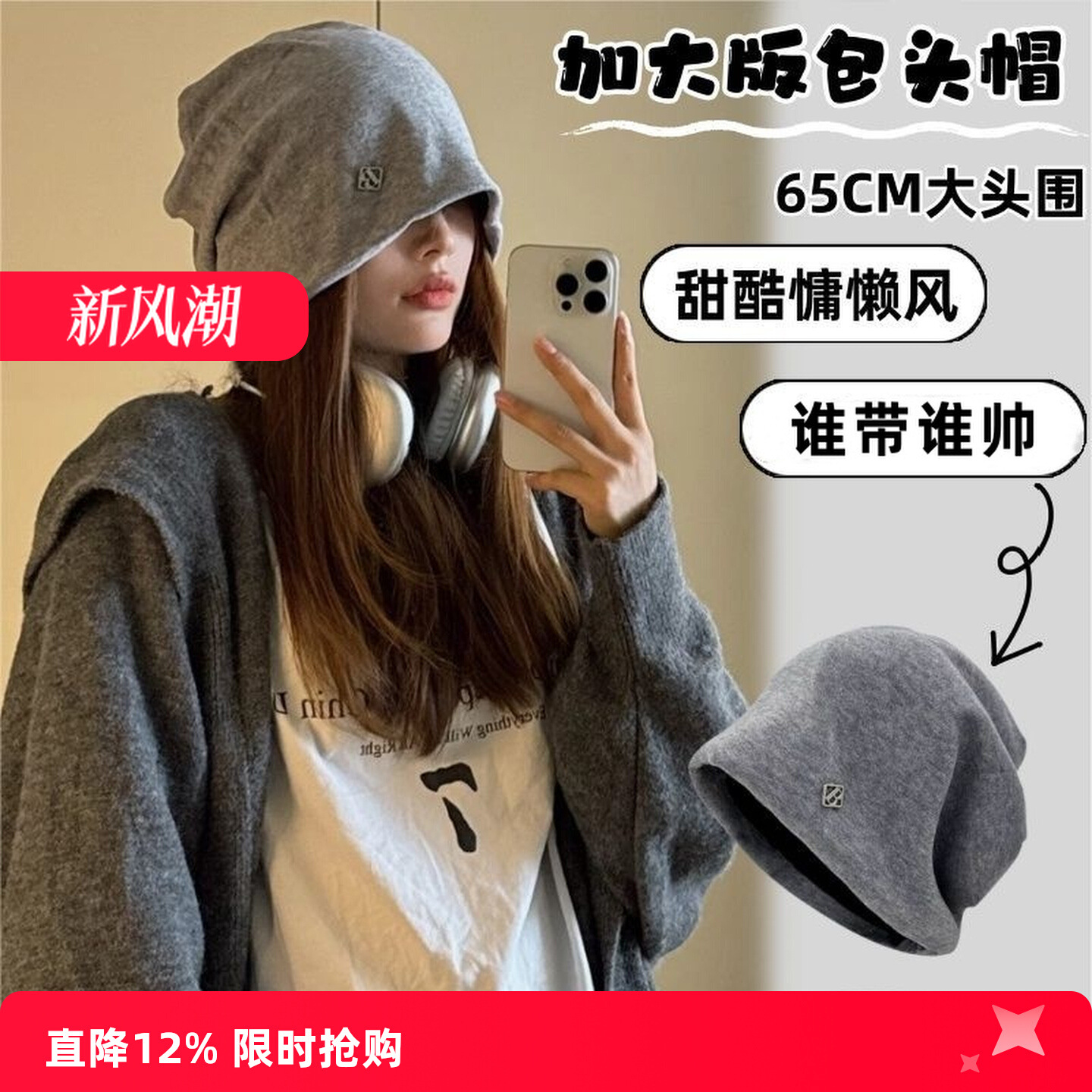 慵懒风大头围堆堆帽女秋冬季时尚套头月子帽冷帽显脸小包头帽子女
