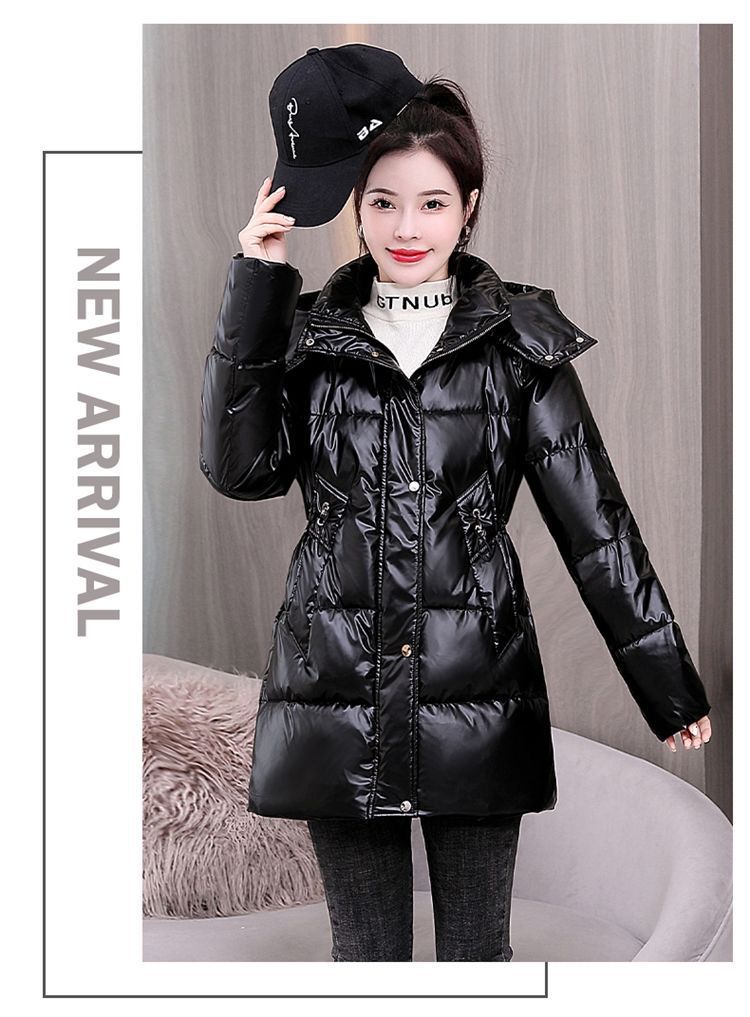 小个子免洗羽绒棉服女款2025冬装收腰亮面棉衣中长款棉袄女潮