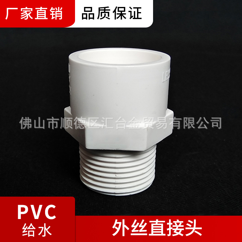 広東聯塑PVC-U給水管部品の外糸は外ねじの直接外歯直継手の外糸に通されています。