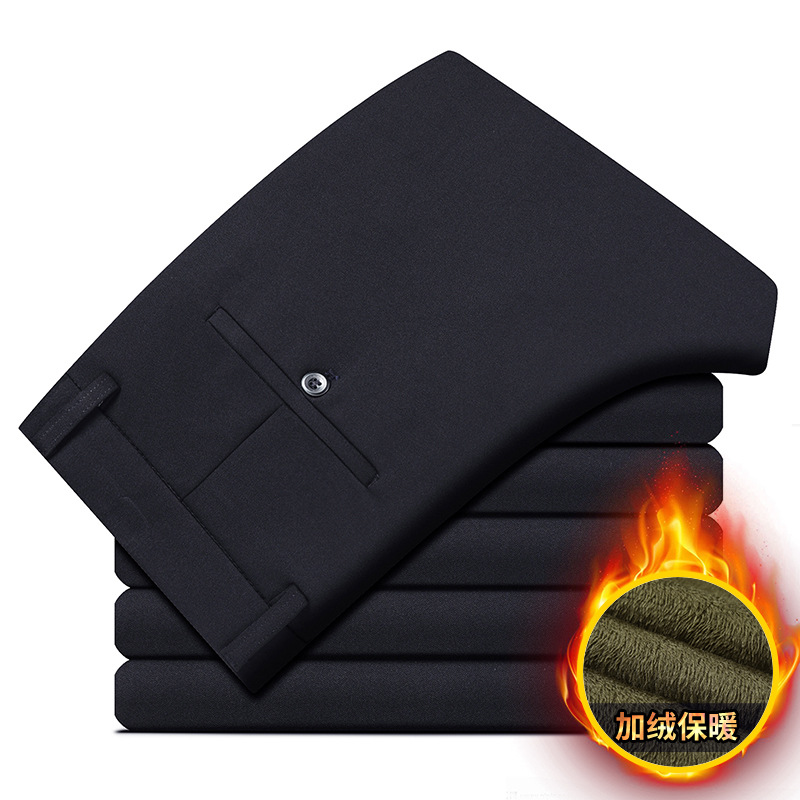 メンズ裏起毛厚手四方向ストレッチカジュアルパンツ2024秋冬メンズパンツ中高年ビジネスカジュアル保温ロングパンツ