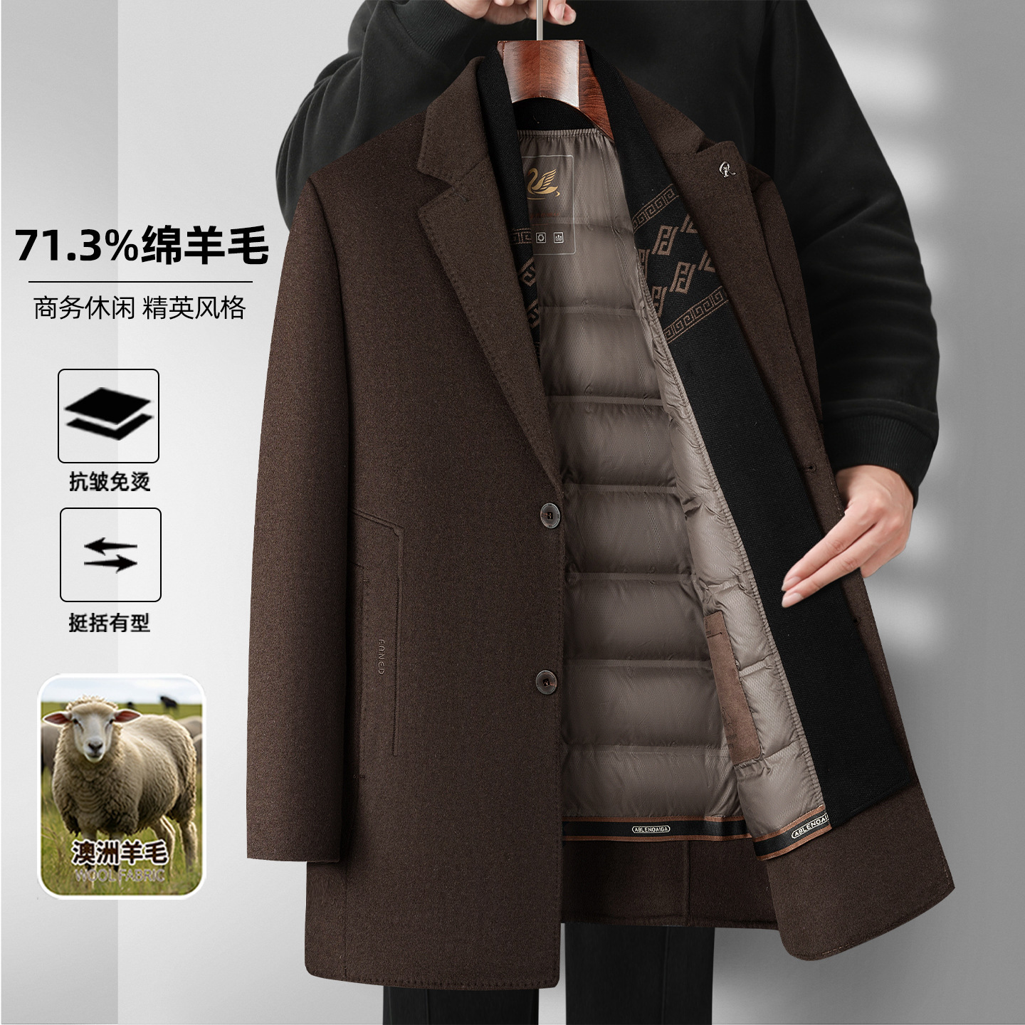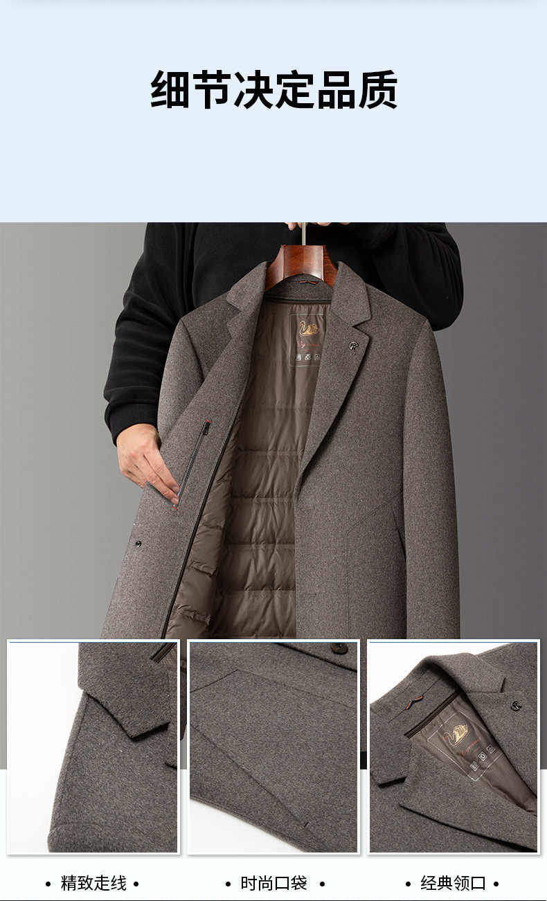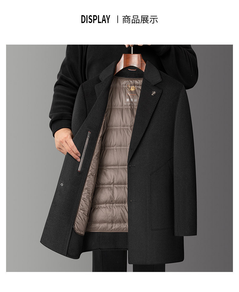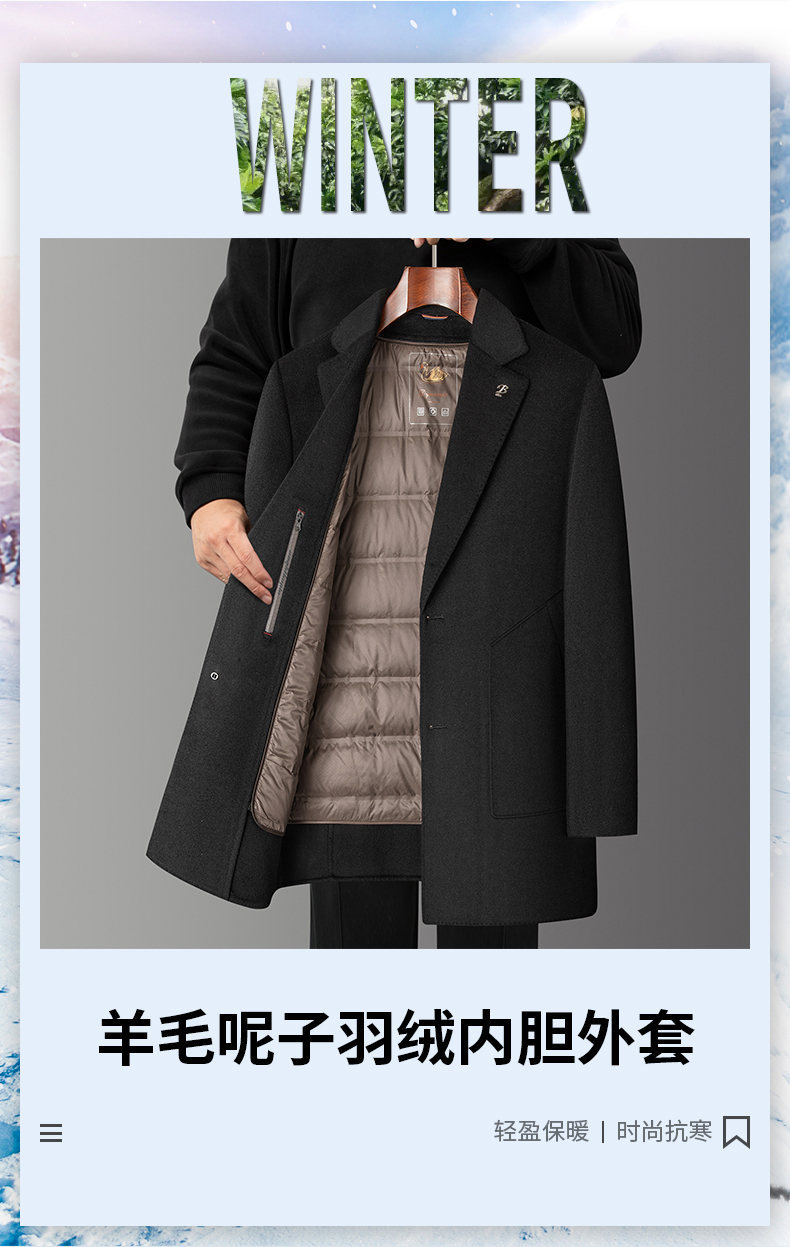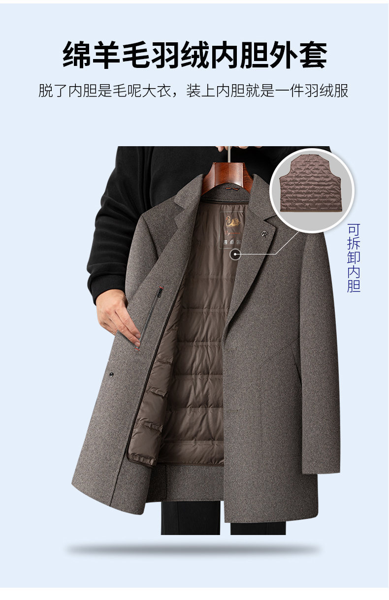 男士羊毛呢大衣2025秋冬新款男装中年商务休闲可脱卸羽绒内胆外套