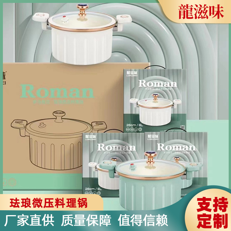 新型ローマ微圧鍋エナメル陶磁器圧力鍋無粘シチュー鍋家庭用大容量双耳料理鍋