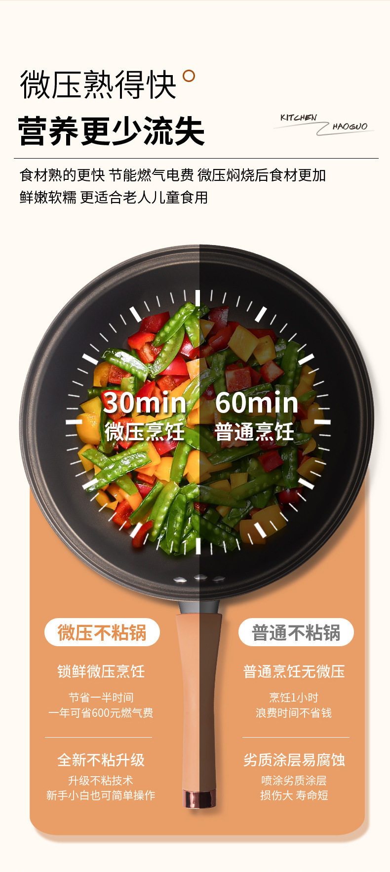 新款韩式平底不粘锅养生锅健康炒锅蒸煮一体锅炒菜锅通用锅具批发
