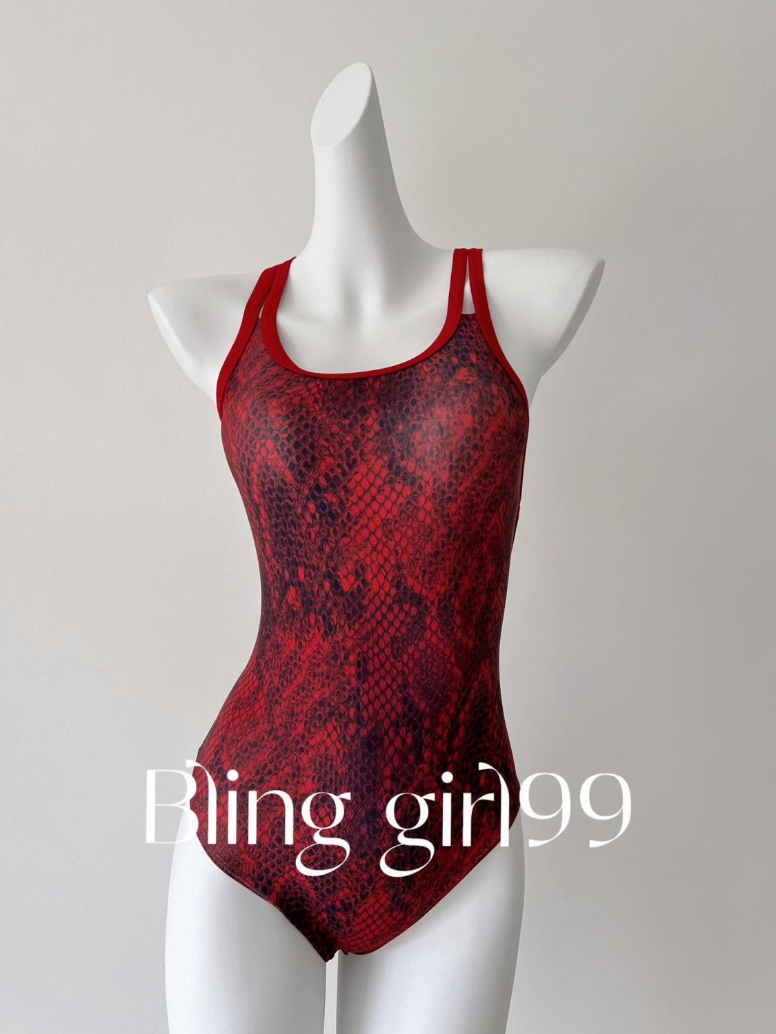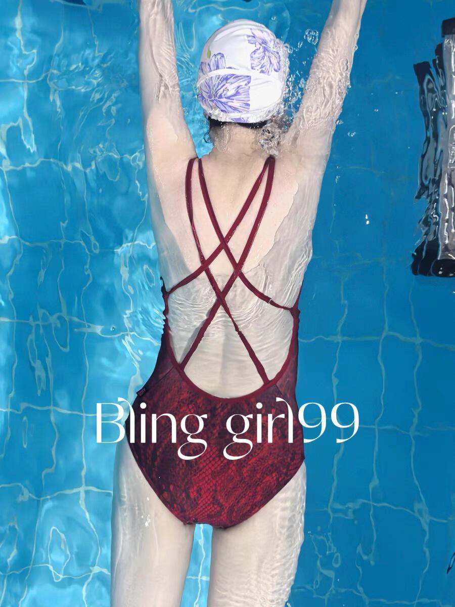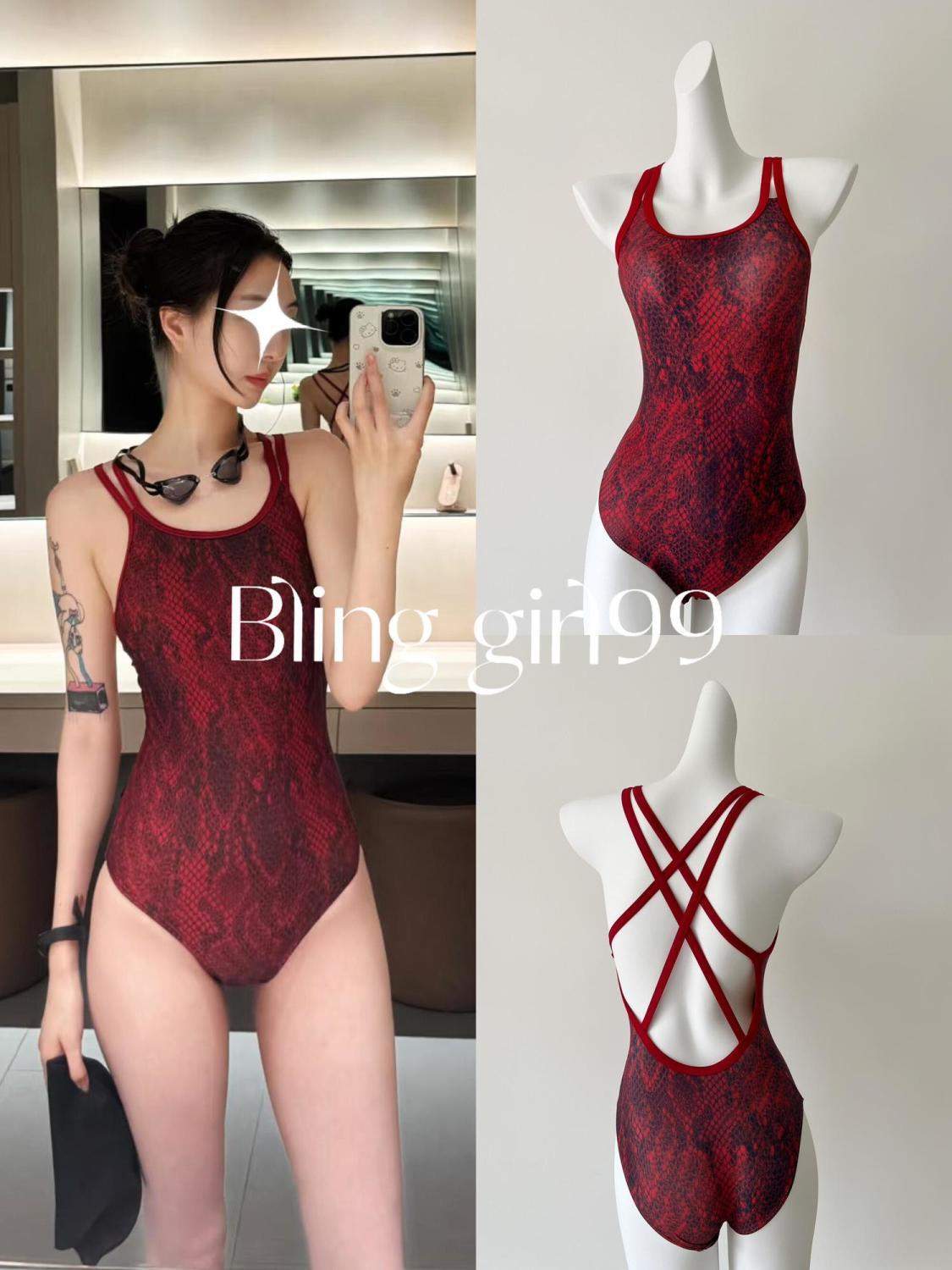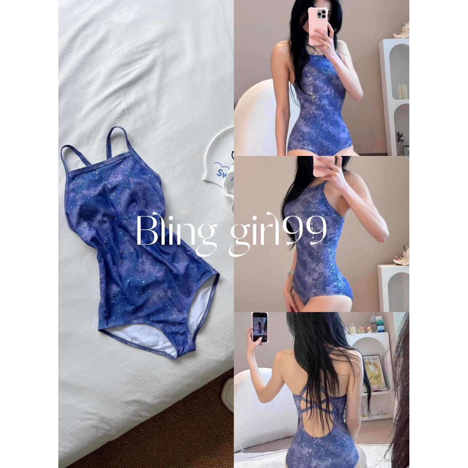 【星空秘境】烫金印花显瘦连体三角低叉泳衣女竞速泳衣游泳训练