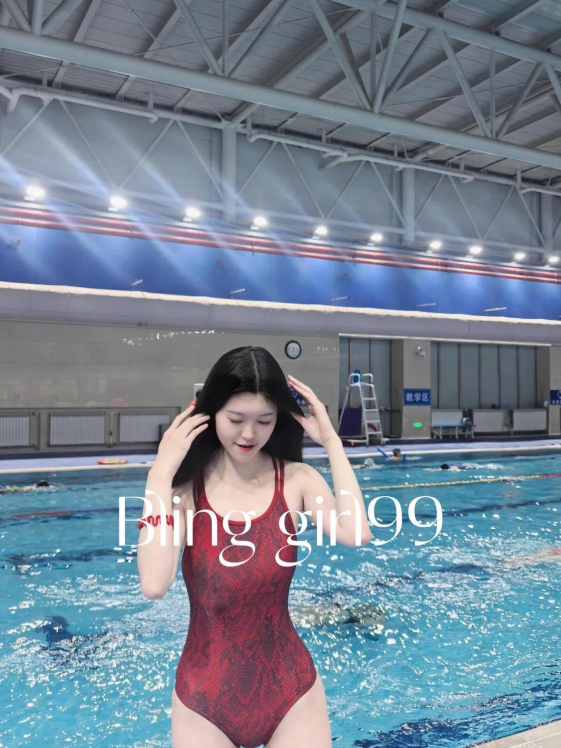 純欲風高颜値真珠粉連体三角水着女性競速微太っ大サイズ水泳館専用運動