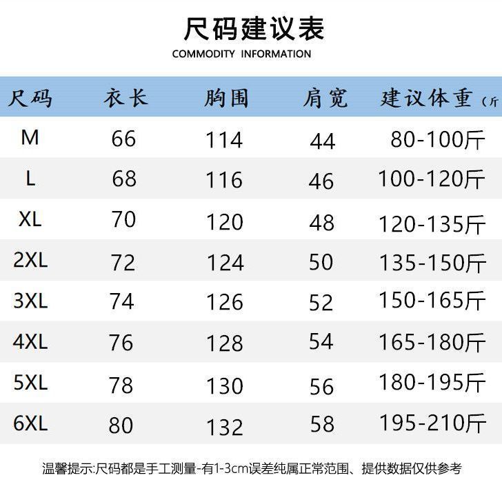 尺码 M 80-100斤,L 100-120斤,XL 120-135斤,2XL 135-150斤,3XL 150-165斤,4XL 165-180斤,5XL 180-195斤,6XL 195-210斤
