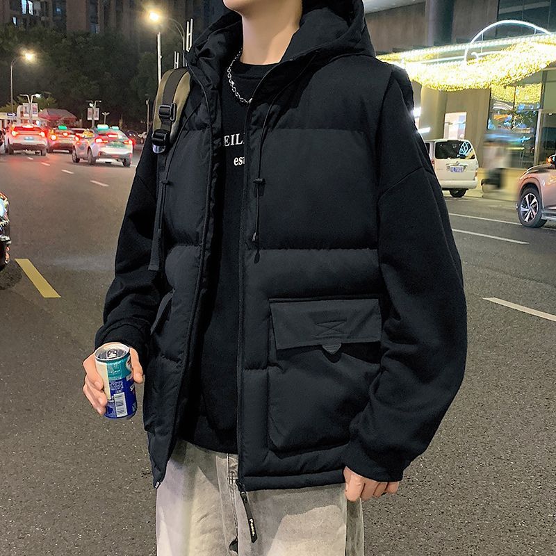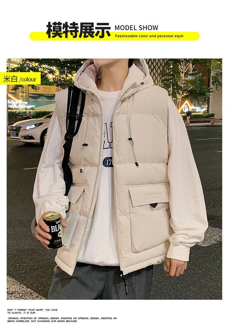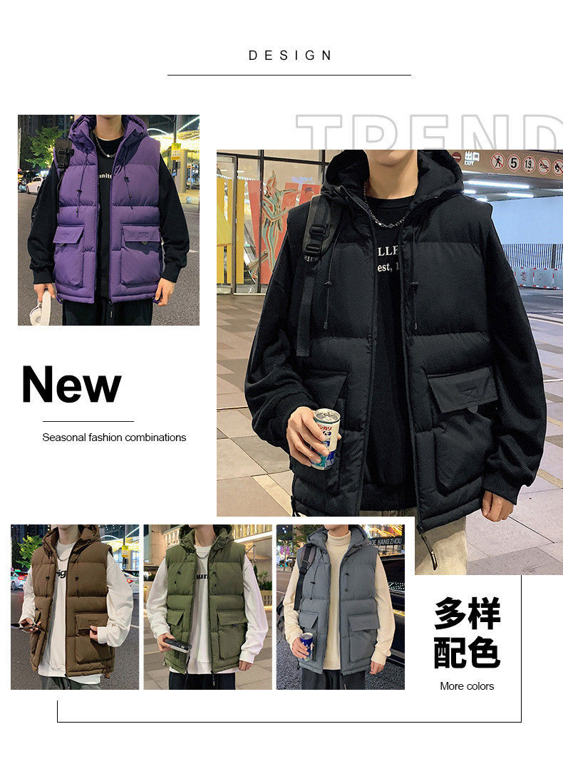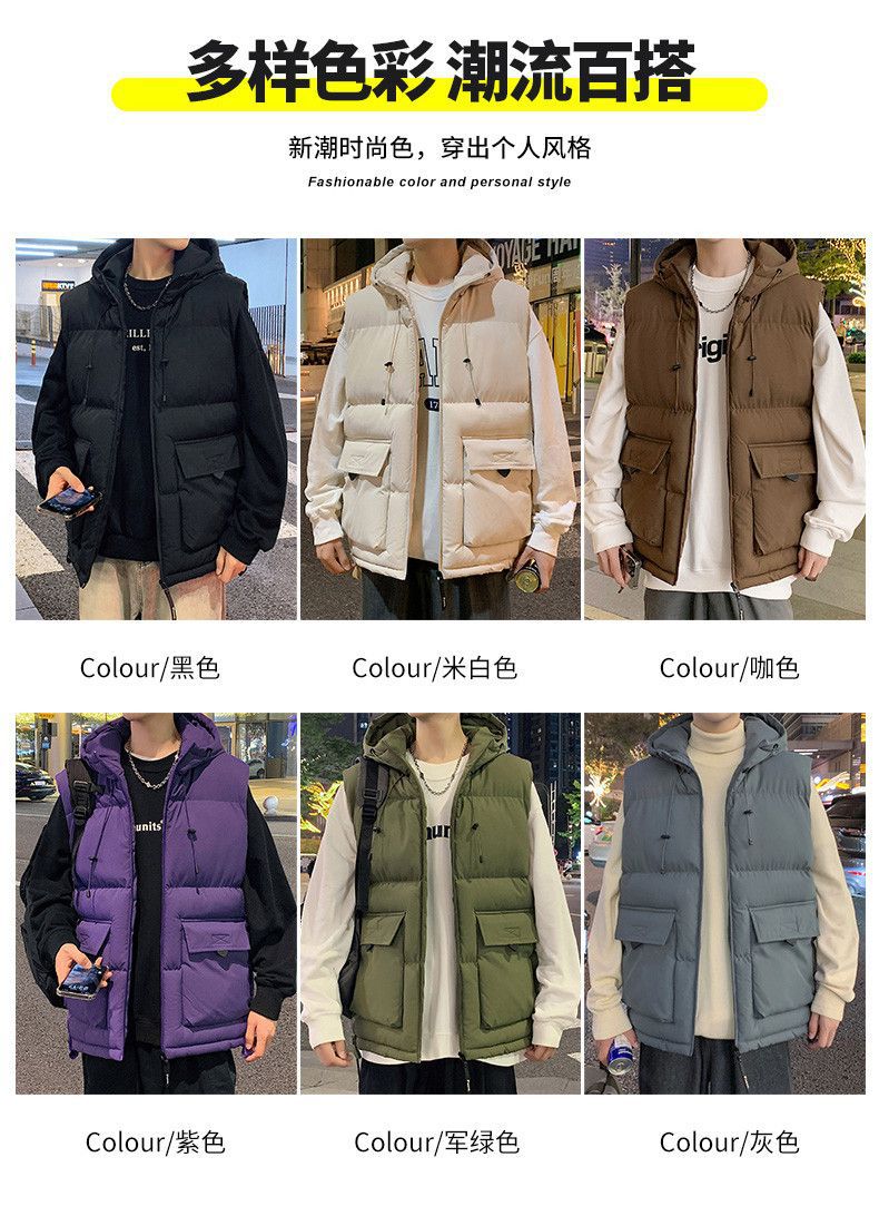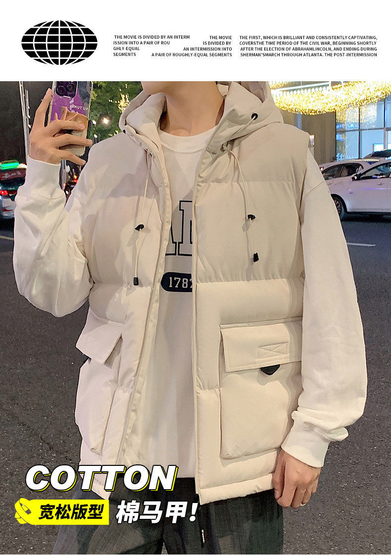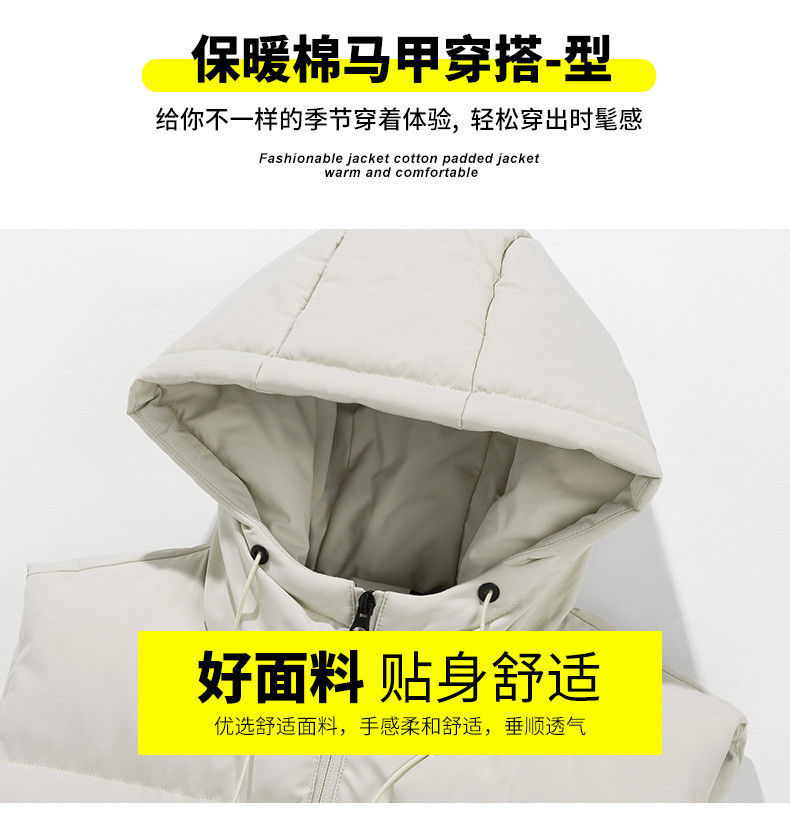 羽绒棉马甲男秋冬季加厚防寒保暖工装背心韩版带帽子坎肩马夹外套