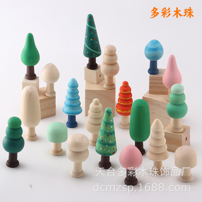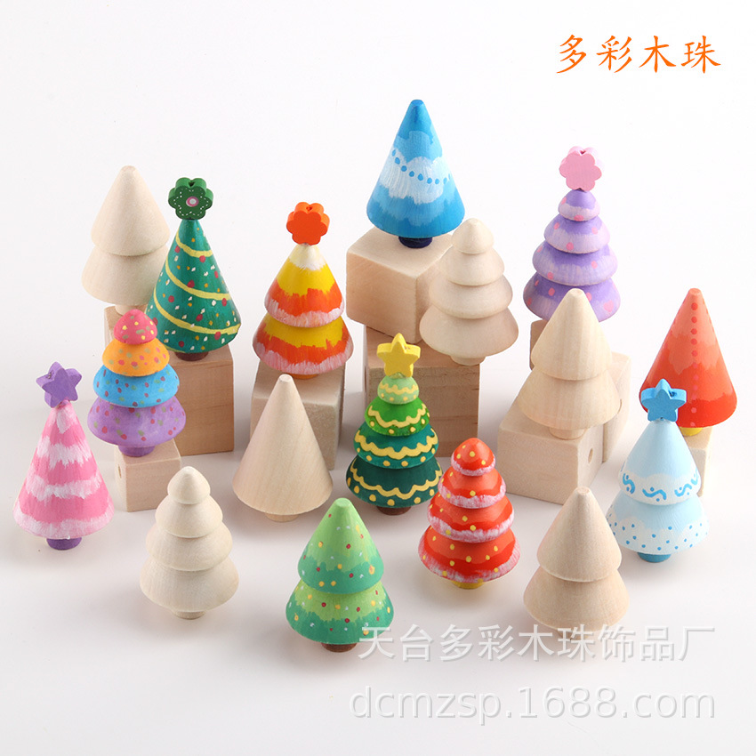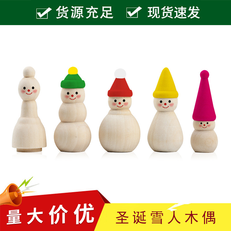 原木色儿童DIY彩绘圣诞小木人木头雪人涂鸦白胚圣诞雪人木偶摆件