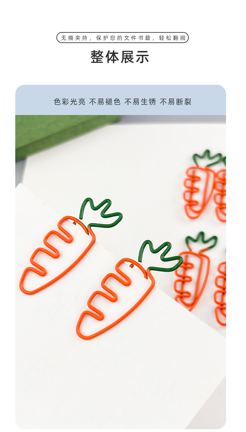 クロスボーダーカラフルニンジン型ペーパークリップ、オフィス用クリエイティブクリップ、漫画風異形メタルブックマーク、手帳クリップ