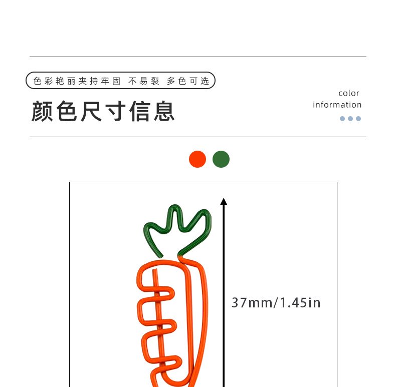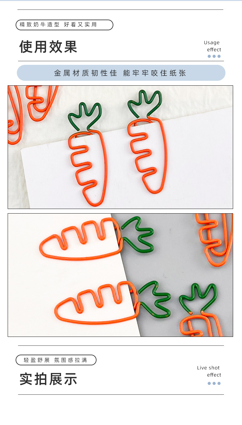 クリエイティブカラー果物2色ニンジン漫画異形クリップかわいい金属スタイルの大きなクリップ卸売り