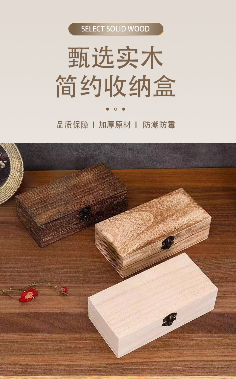 锁扣木盒带盖长方形木盒复古储物盒子高端实木礼品盒收纳盒