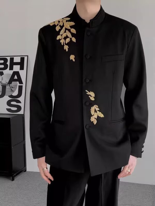 秋季新中式重工刺绣玉兰花中山装西服外套复古痞帅高级感西服男款